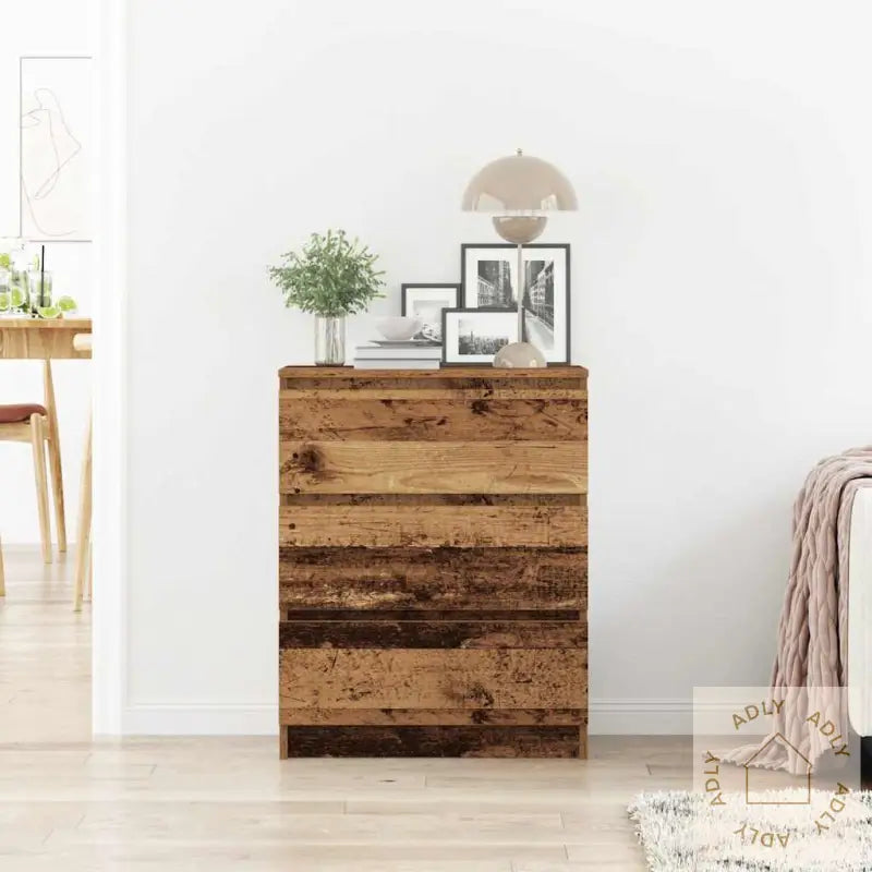 Stabilt og slitesterkt materiale: Skjenken er laget av konstruert tre, kjent for både sin styrke og jevne overflate. Det tåler daglig bruk og motstår fuktighet, vridning og sprekker, slik at møbelet holder seg pent i lang tid. Det gir deg solide møbler du kan stole på, enten det gjelder innendørsmøbler eller som ekstra oppbevaring nær inngangspartiet.God plass til oppbevaring: De tre skuffene og det romslige skapet sørger for at det alltid er plass til å oppbevare alt fra servise og glass til småting du gjerne vil ha samlet på ett sted. Perfekt for alle som trenger fleksible møbler og ønsker det ryddig hjemme.Solid topp: Den robuste bordplaten gir deg flust av muligheter for å fremheve dine favorittdekorasjoner, vaser, bilder eller små planter. Det gjør det enkelt å tilpasse stilen etter sesong og behov.Lett å holde ren: Skjenkens overflater er glatte og enkle å rengjøre, så den krever minimalt med vedlikehold – bare en fuktig klut holder møblene pene og innbydende over tid.Med sitt tidløse uttrykk i gammel tre-farge passer denne bufféen perfekt sammen med andre møbler til hjemmet ditt. Om du ønsker å gi boligen en oppgradering, eller ønsker et nytt samlingspunkt for oppbevaring, får du her et kvalitetsmøbel som tåler hverdagsbruk.