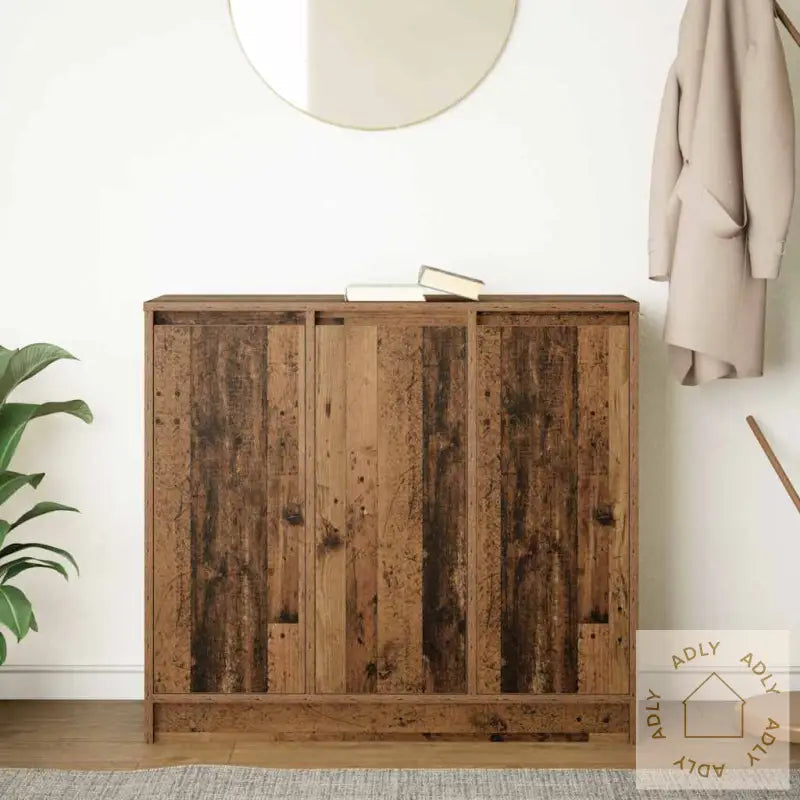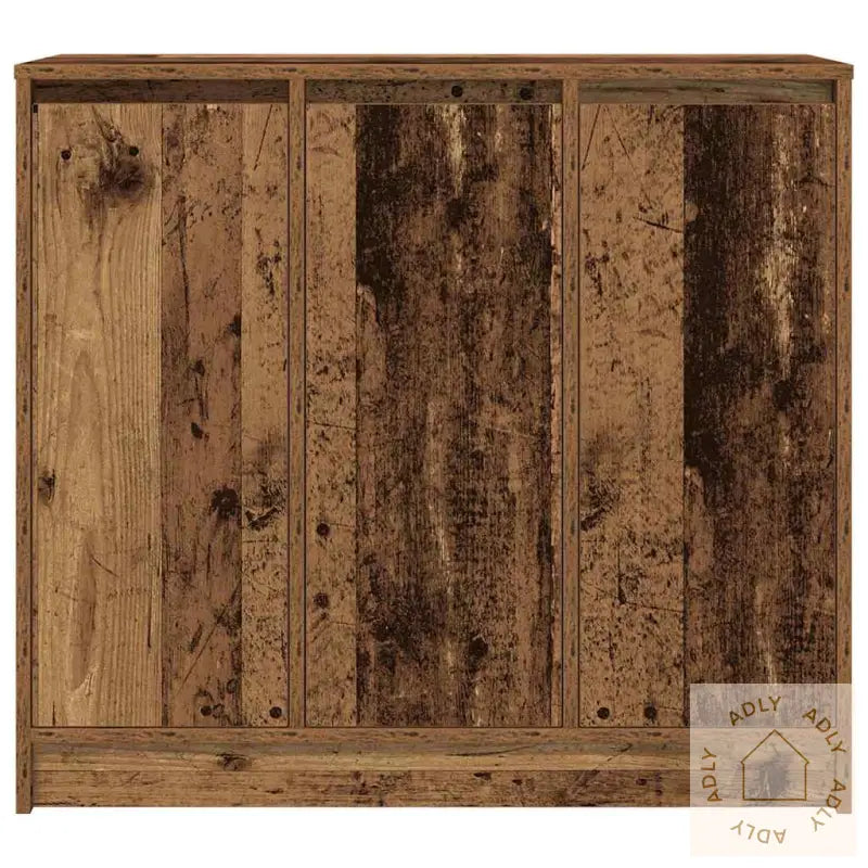 Farge: gammelt treMateriale: konstruert treTotalmål: 85 x 34 x 76 cm (B x D x H)Antall dører: 3Antall hyller: 3Totalt maks. vektkapasitet: 60 kgMaks. vektkapasitet per hylle: 20 kgMontering kreves: ja