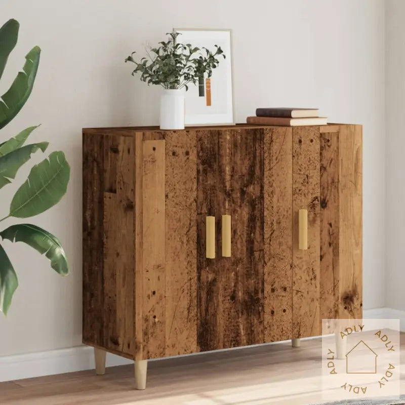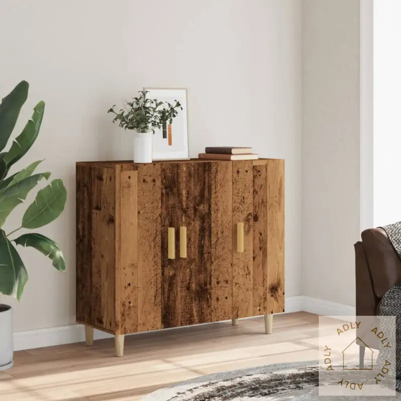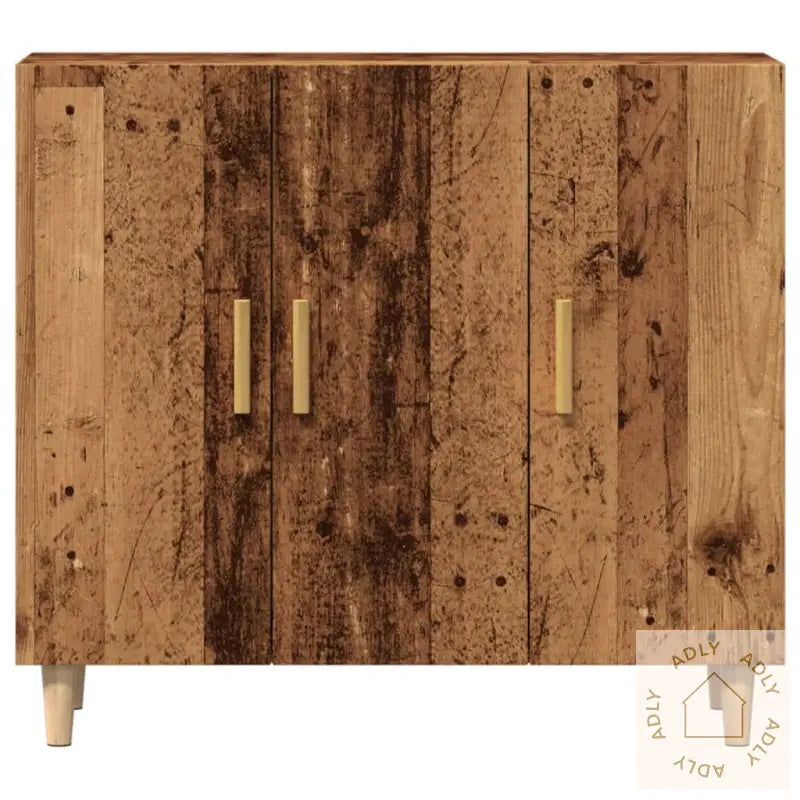 Holdbart materiale: Den er laget av slitesterkt konstruert tre, kjent for sin glatte overflate og solide konstruksjon. Treverket gir styrke, god stabilitet og en pålitelig motstand mot fuktighet, så denne skjenken varer lenge og tåler daglig bruk.Rikelig med oppbevaring: Sideskapet kommer med 3 dører som skjuler masse lagringsplass, slik at du enkelt kan holde orden på alt fra servise til småting du bruker til hverdags. Den romslige toppen er ideell for å vise frem dekor, planter eller favorittbøkene dine, og gir personlighet til rommet ditt – perfekt for deg som liker å gi hjemmet særpreg.Enkel rengjøring: Den glatte overflaten på dette oppbevaringsskapet gjør det lett å holde rent; bare tørk over med en fuktig klut, så ser det alltid pent ut uten mye styr.Stilig design: Skjenken har et tidløst, stilig design som skaper en varm og unik atmosfære i rommet. Den elegante finishen i gammelt tre gir ekstra sjarm og passer utmerket sammen med andre populære møbler til hjemmet, som bokhyller og stående hyller.Advarsel: