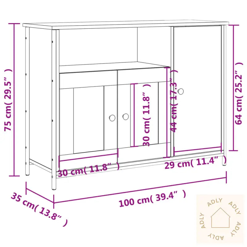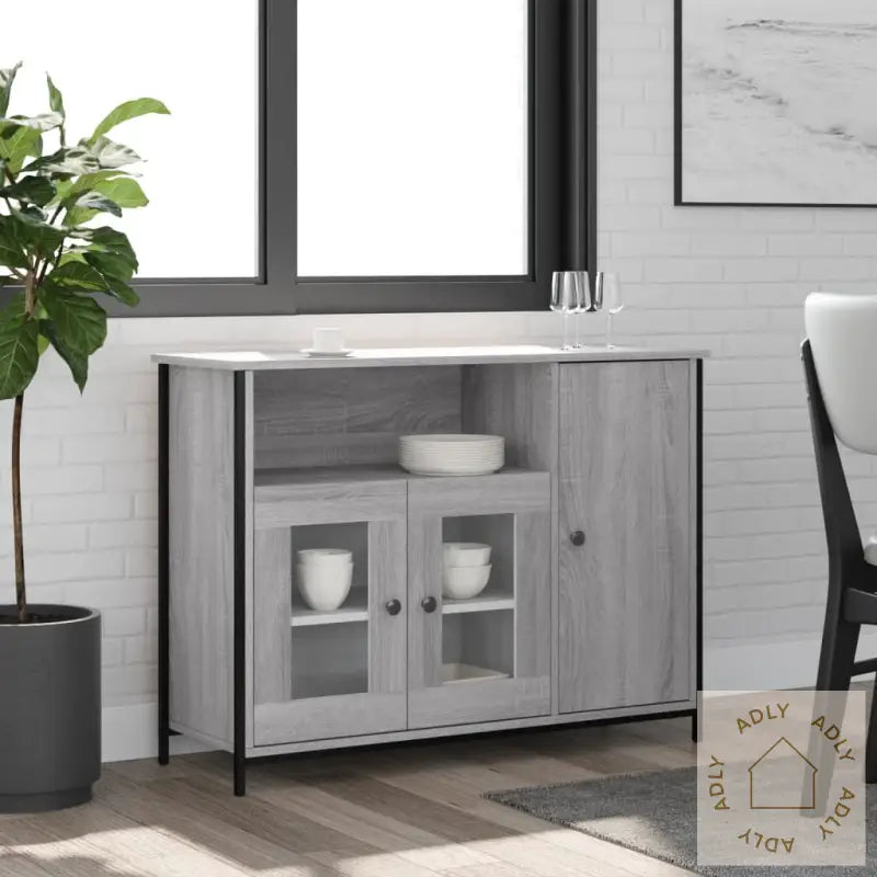 Slitesterkt materiale: Skjenken er laget av konstruert tre i høy kvalitet, kjent for sin jevne overflate, styrke og holdbarhet. Materialet gir stabilitet, tåler fuktighet godt og er enkelt å holde rent – en rask omgang med en fuktig klut holder skjenken pen lenge.Rikelig med lagringsplass: Du får masse plass til all slags småting i det romslige oppbevaringsskapet. Hold daglige nødvendigheter, dokumenter eller servise organisert og lett tilgjengelig, så slipper du rot på kjøkkenet, i gangen eller i stua.Visningsfunksjon: Topplaten på dette stilrene oppbevaringsmøbelet gir deg mulighet til å vise frem pynt, fotoalbum, grønne planter eller andre dekorative elementer som setter et personlig preg på rommet.Justerbare føtter: Skjenken står stødig takket være fire justerbare føtter med plastputer. Selv på ujevnt gulv vil justerbare føtter sikre balansen, beskytte gulvet mot riper og sørge for ekstra stabilitet – en fordel særlig hvis du ofte ommøblerer dine møbler.Advarsel: