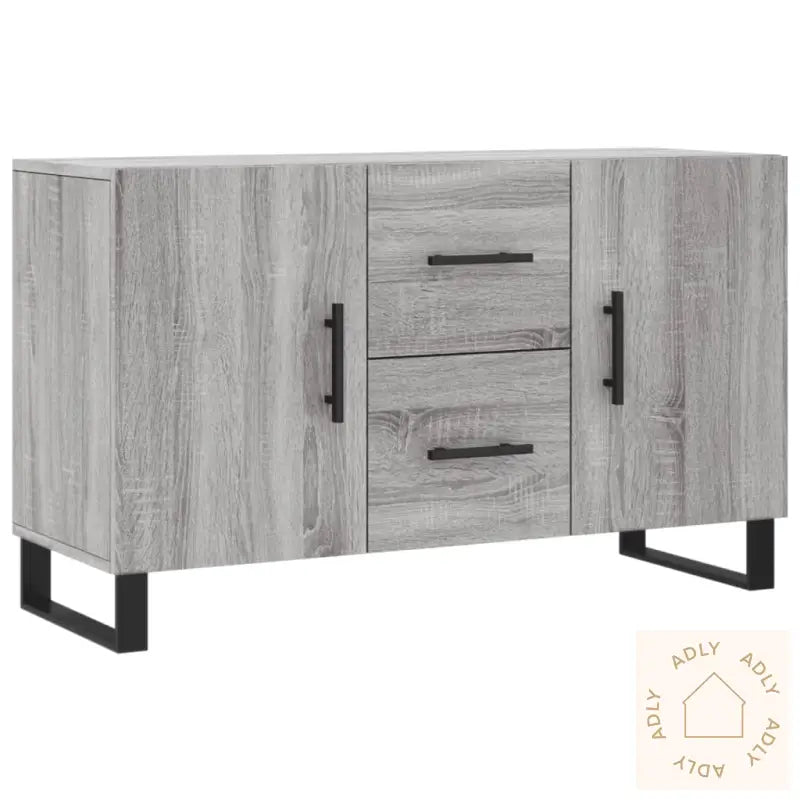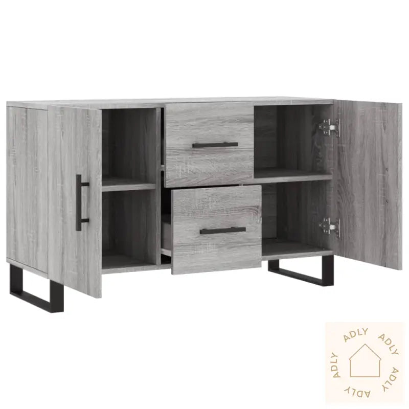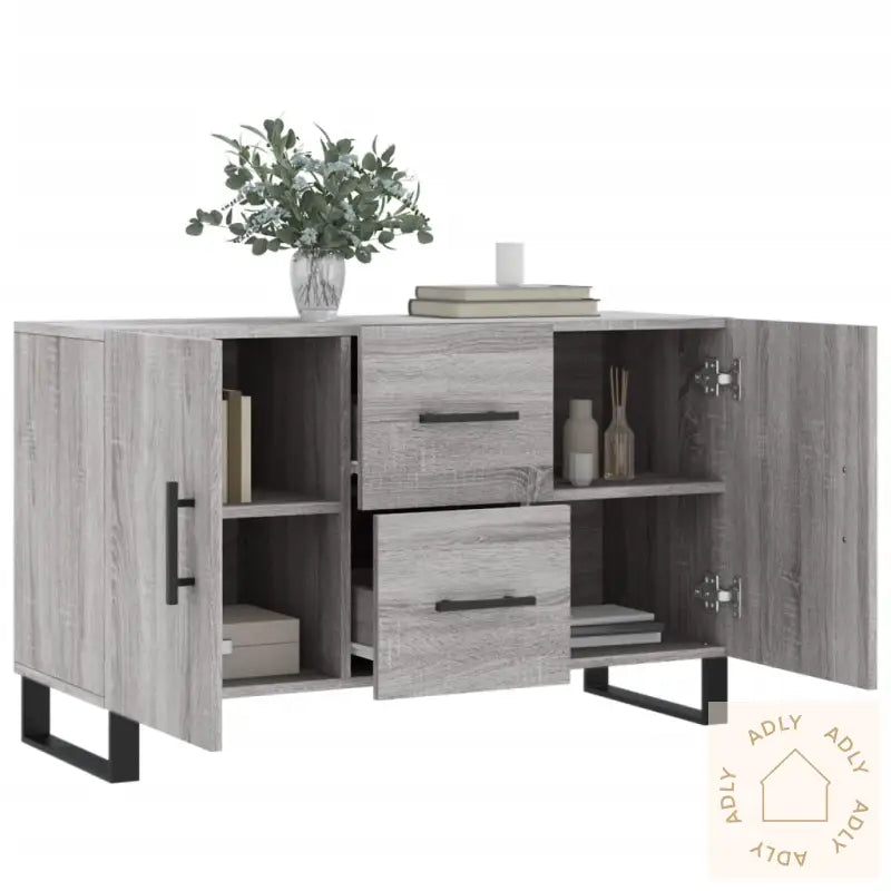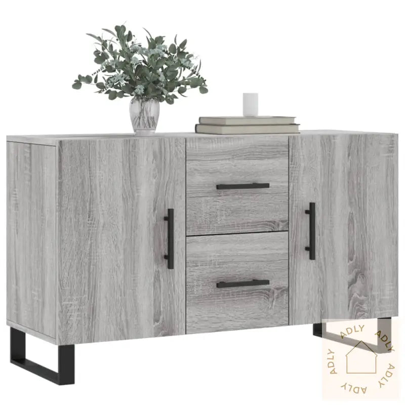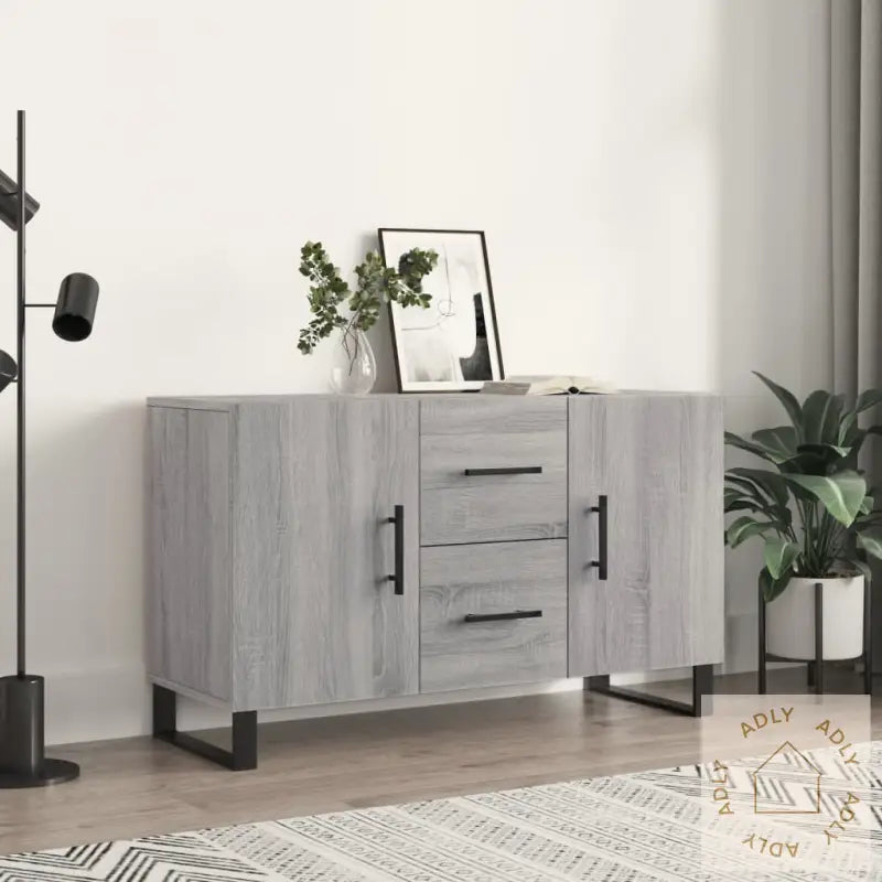 Slitesterkt materiale: Konstruert treverk sørger for at denne skjenken varer lenge, samtidig som den har en elegant finish med enkel rengjøring og minimal vedlikehold.Metallben: De moderne bena i metall gir ekstra stabilitet, samtidig som de tilfører en rolig og trendy look til både stue og andre rom. Kombinasjonen av tre og metall gir et sofistikert uttrykk og gjør skjenken enkel å kombinere med ulike interiørstiler, enten det er klassiske innemøbler eller utendørsmøbler.Rikelig med lagringsplass: Skjenkens romslige skap og skuffer gjør det lett å organisere og oppbevare alt fra servise til nødvendige småting, slik at du alltid har tingene dine ryddig og lett tilgjengelig.Stabil og robust topp: Den solide toppen passer ypperlig til å vise frem dekor og personlige minner som bilder eller grønne planter og blir et naturlig samlingspunkt i rommet.Praktiske dører: Beskytt eiendelene dine mot støv og ha dem samtidig skjult for et ryddig uttrykk. Dører og skuffer åpnes enkelt takket være de brukervennlige håndtakene.Advarsel: