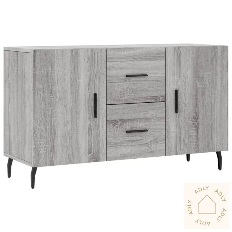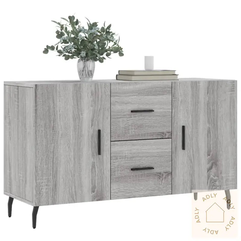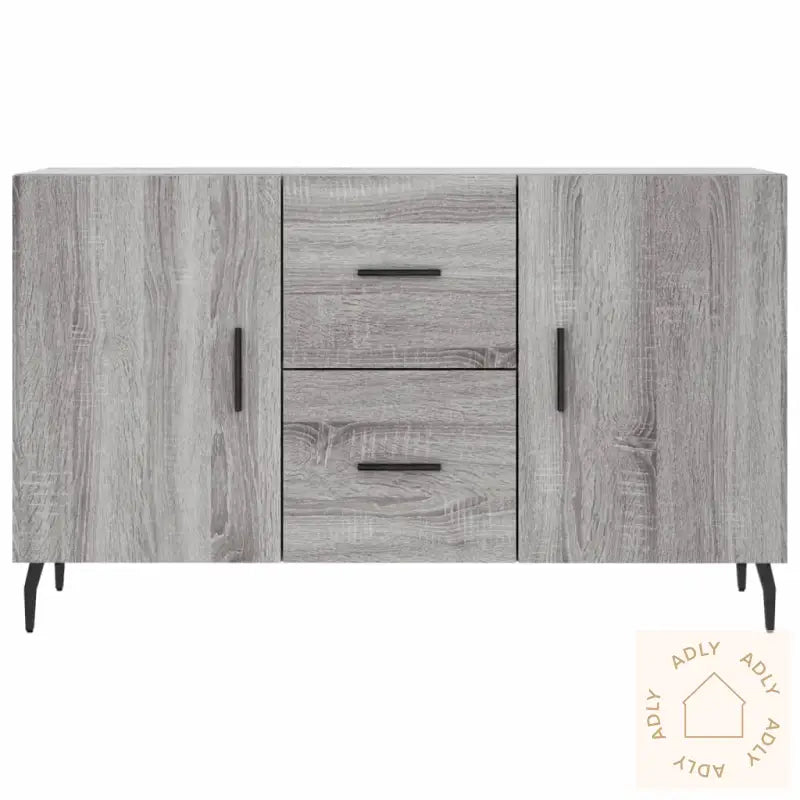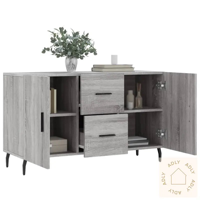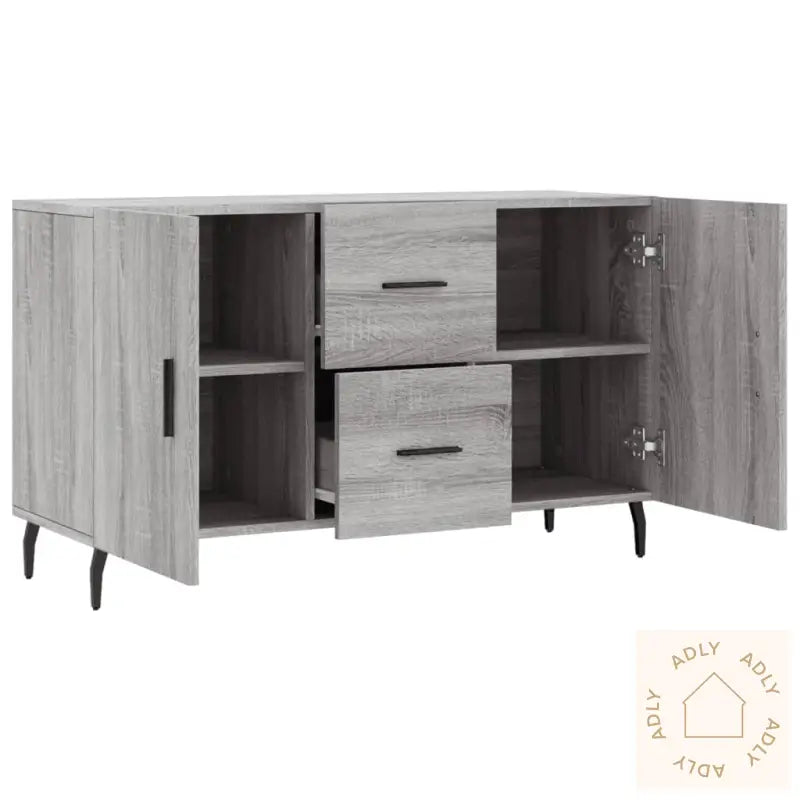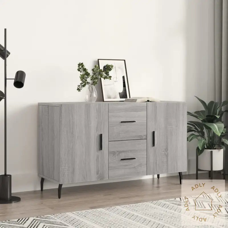 Slitesterkt materiale: Skjenken er laget av konstruert treverk av høy kvalitet. Dette materialet har en glatt overflate og byr på solid styrke, stabilitet og beskyttelse mot fuktighet, noe som gjør at møbelet holder seg pent lenge og står imot hverdagens bruk.Metallben: De moderne metallbena gir et rent og rolig uttrykk til interiøret, samtidig som de sørger for at skjenken står stødig og sikkert på gulvet – perfekt om du ønsker å kombinere med andre moderne hagemøbler eller bokhyller og stående hyller.Rikelig med lagringsplass: Med et romslig oppsett får du god plass til å organisere og oppbevare alt fra servise og bøker til småting i hjemmet – alt lett tilgjengelig.Stabil og robust topp: Topplaten er solid og ideell til å vise frem pyntegjenstander, bilder eller potteplanter, slik at du kan sette et personlig preg på stuen eller gangen.Praktiske dører: Dørene beskytter tingene dine mot støv og gir et ryddig inntrykk. Håndtak på dørene og skuffene gjør det enkelt å åpne og lukke, noe som øker både brukervennlighet og komfort i hverdagen.Advarsel: