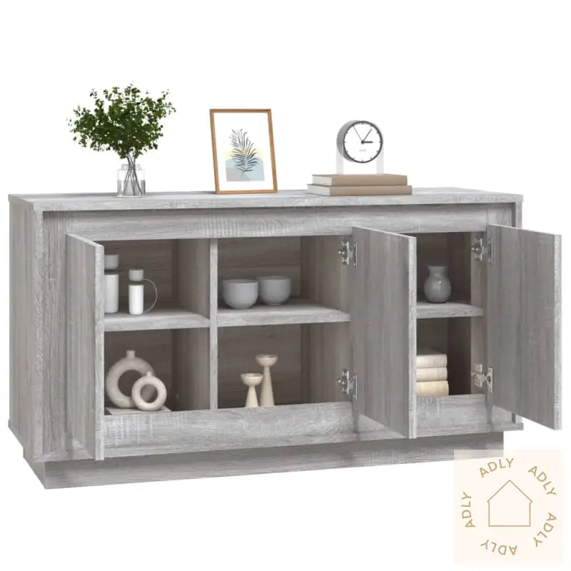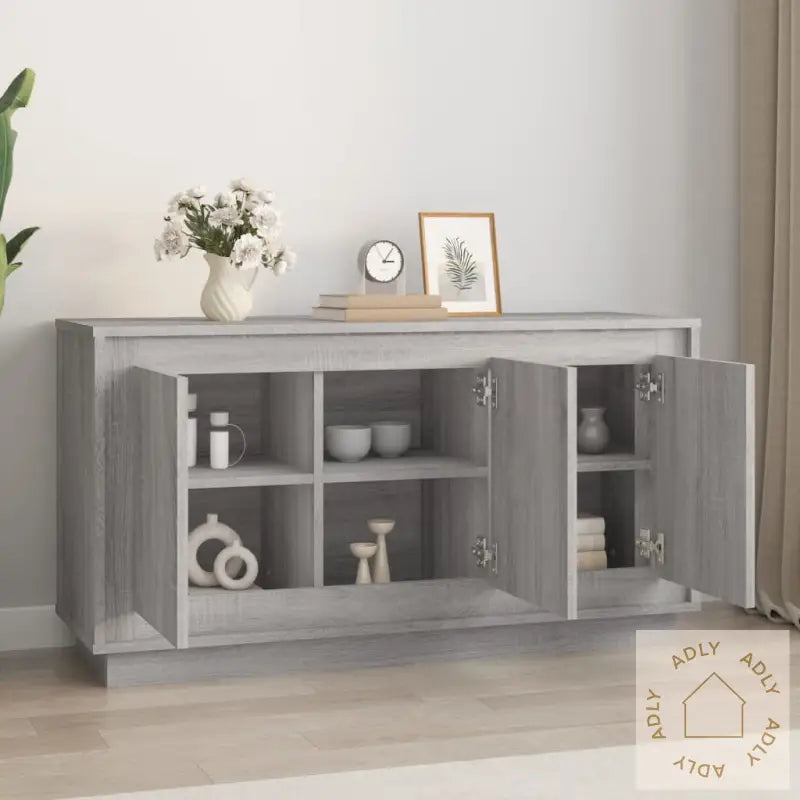 Slitesterkt materiale: Skapet er laget av høykvalitets konstruert tre, som ikke bare har en jevn og behagelig overflate, men også er sterkt, stabilt og motstandsdyktig mot fukt. Dette gir ekstra holdbarhet og gjør at skjenken holder seg pen lenge. Det er enkelt å holde rent – bare tørk over med en fuktig klut.Rikelig med lagringsplass: Med hele 6 rom tilbyr skjenken god plass til å organisere daglige nødvendigheter, fra servise og glass til spill, bøker eller lignende. Alt holdes ryddig og lett tilgjengelig, slik at du får bedre orden hjemme.Visningsfunksjon: Topplaten gir en flott mulighet til å fremheve dekorative elementer; her kan du stilfullt vise frem alt fra bokhyller og stående hyller til personlige minner og små grønne planter.Praktiske dører: Oppbevaringsskapet har dører som beskytter tingene dine mot støv og gir et ryddig inntrykk, samtidig som de skjuler rot og holder innholdet mer privat.Godt å vite: