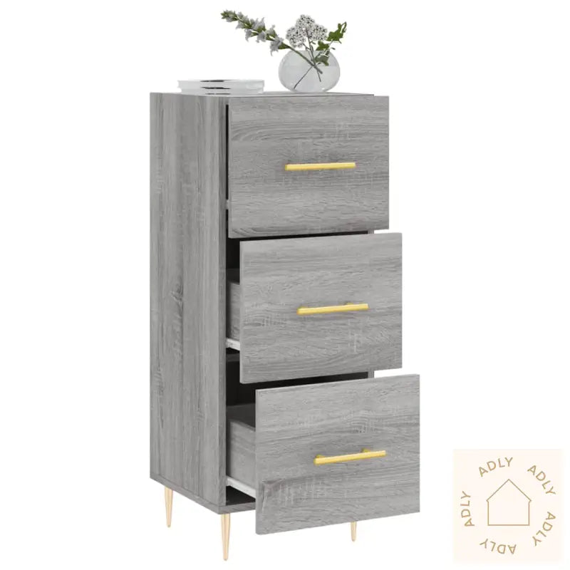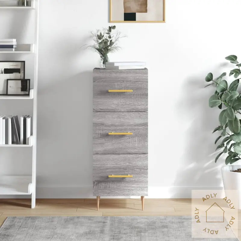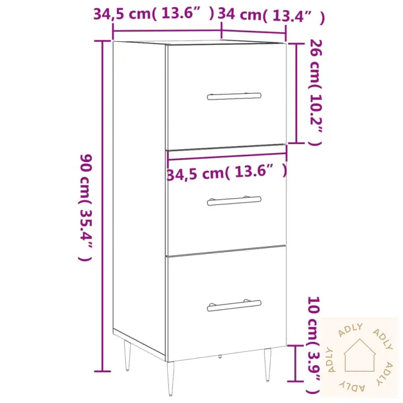 Slitesterkt materiale: Skjenken er laget av konstruert tre i høy kvalitet, kjent for sin jevne overflate og solide konstruksjon. Materialet gir ikke bare styrke og stabilitet, men gjør også møbelet motstandsdyktig mot fuktighet – noe som gjør at det holder seg pent år etter år.Metallben: De stilrene metallbena gir et moderne uttrykk, og styrker både helhetsinntrykket og stabiliteten. Disse detaljene gir deg et møbel som er enkelt å matche med annet interiør eller stående hyller og bokhyller.God lagringsplass: Med tre romslige skuffer gir denne skjenken deg god plass til å organisere alt fra borddekor og servietter til småting du vil ha lett tilgjengelig. Perfekt for deg som ønsker orden i hjemmet uten å gjøre kompromisser på stil.Stabil og robust topp: Den solide toppen egner seg supert til utstilling av dekorative gjenstander, som bilderammer, planter eller dine favoritter. Du får dessuten ekstra plass til å vise personlige detaljer frem på en innbydende måte.Advarsel: