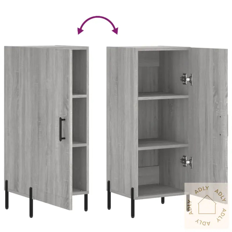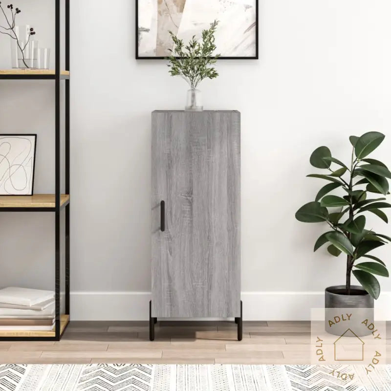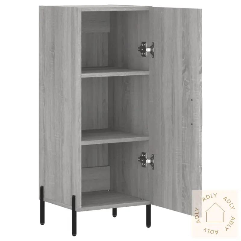 Slitesterkt materiale: Skjenken er laget av konstruert treverk av eksepsjonell kvalitet. Overflaten er glatt og lett å holde ren, og materialet gir styrke, stabilitet og god motstand mot fukt. Dette gir deg et robust møbel som varer lenge, og det tåler daglig bruk uten problemer.Metallben: De solide metallbena sørger ikke bare for stabilitet, men gir også en moderne touch som løfter helhetsinntrykket av møblet. Bena i metall gjør også at skjenken føles lett i rommet, og det blir enkelt å vaske under.God lagringsplass: Med tre separate rom får du praktiske muligheter til å organisere dine eiendeler på en ryddig måte. Her kan du oppbevare alt fra servise til bøker eller andre ting du vil ha lett tilgjengelig – perfekt for deg som ønsker funksjonelle og pene møbler til hjemmet.Stabil og robust topp: Toppen av skjenken har plass til dekorative elementer som bilder, potteplanter eller stearinlys, slik at du lett kan personalisere stilen og vise frem det du liker best.Praktisk dør: Oppbevar tingene dine skjult og støvfrie bak døren. Det praktiske håndtaket gjør det enkelt å åpne og lukke, så du får rask tilgang til innholdet når du trenger det. Perfekt hvis du ønsker et ryddig uttrykk i rommet.Advarsel: