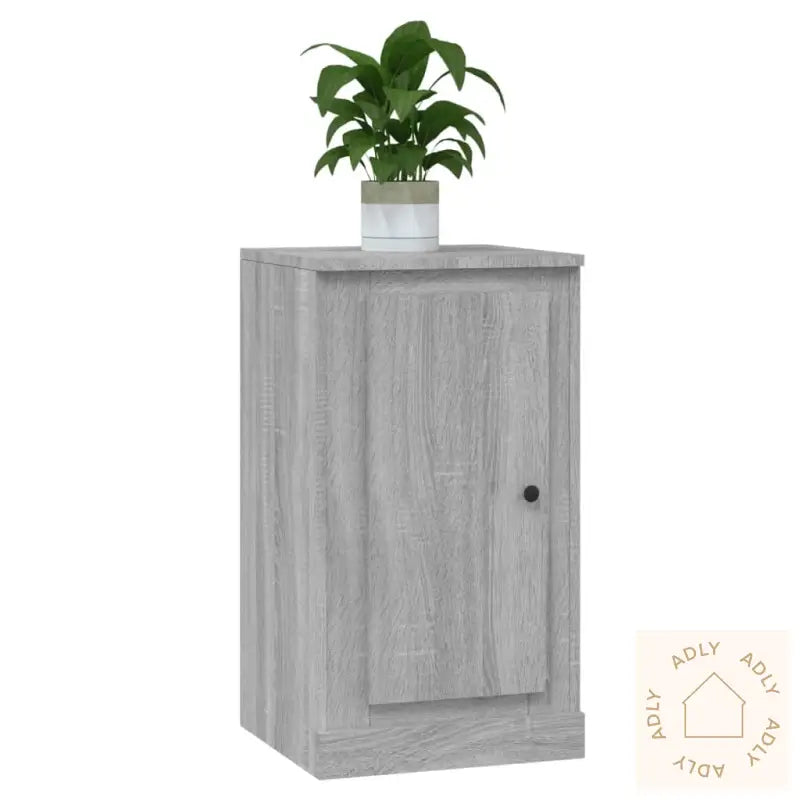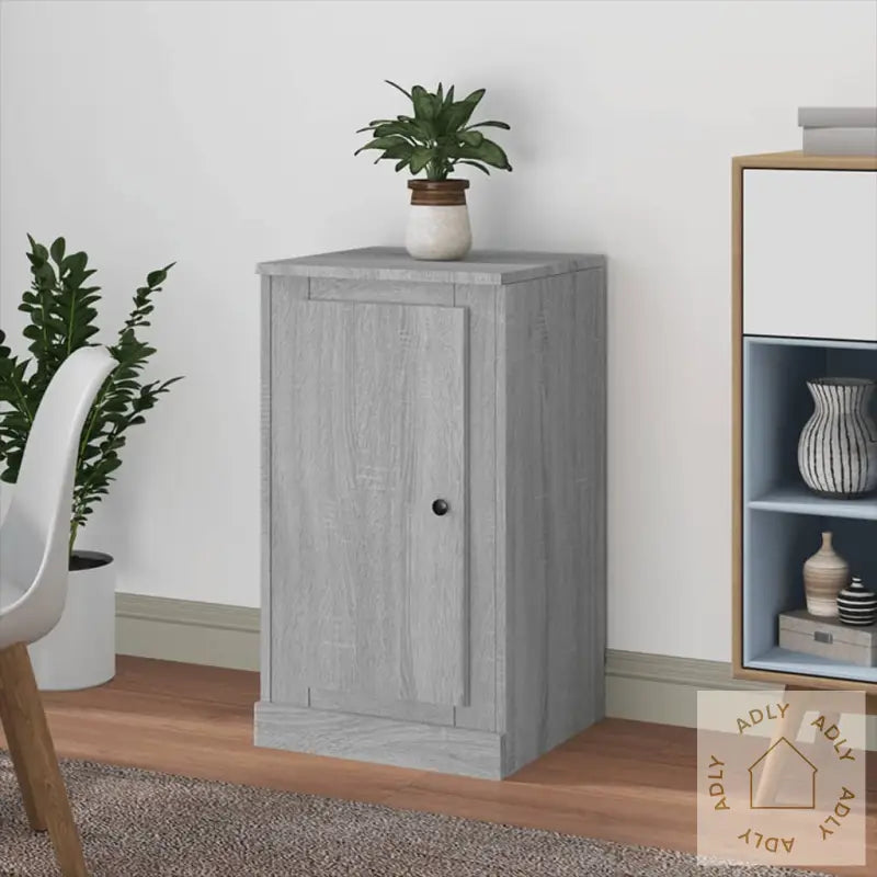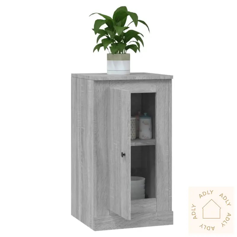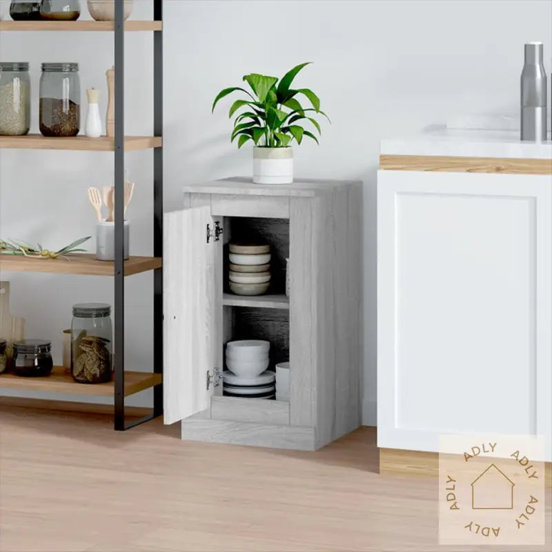 Solid materiale: Dette skapet er laget av konstruert treverk i grå sonoma-finish. Det gir ikke bare en flott, moderne look – materialet har også en jevn og lettstelt overflate, og er designet for å være slitesterkt, stabilt og motstandsdyktig mot fukt, slik du forventer av kvalitetsmøbler til hjemmet.Rikelig med lagringsplass: Sideskapet har godt med plass til å organisere alt fra servise, bøker og blader, til småting og daglige nødvendigheter du vil ha lett tilgjengelig – her er det enkelt å holde orden i hverdagen.Visningsfunksjon: Den robuste toppen gjør det lett å sette frem pyntegjenstander, bilder eller grønne planter. Om ønskelig kan skapet brukes som nattbord på soverommet, eller til oppbevaring av små ting i gangen.Advarsel: