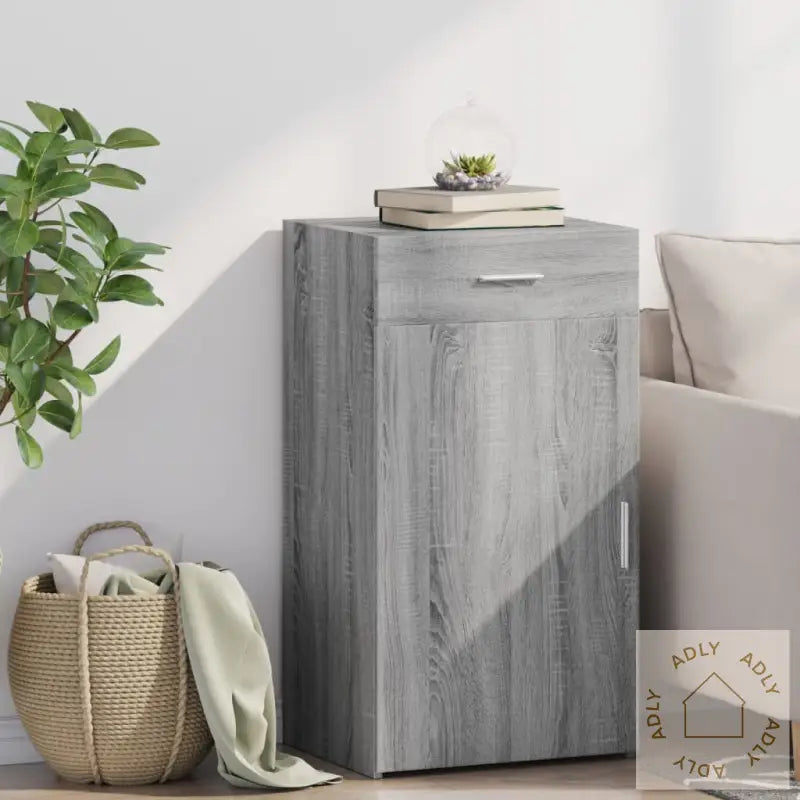 For å sikre at skjenken ikke velter, må den festes ordentlig til veggen med den medfølgende festeanordningen.Farge: grå sonomaMateriale: konstruert treMål: 50 x 42,5 x 93 cm (B x D x H)Montering kreves: jaLegal Documents:
