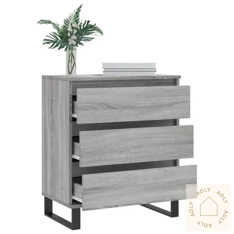 - Slitesterkt materiale: Skjenken er laget av konstruert tre av høy kvalitet, som gir en jevn og elegant overflate. Materialet er kjent for sin styrke, stabilitet og motstand mot fuktighet, noe som gjør at møbelet holder seg pent lenge. I tillegg er det enkelt å holde rent – bare tørk over med en fuktig klut.