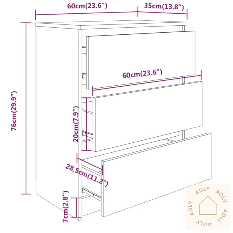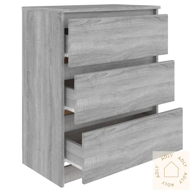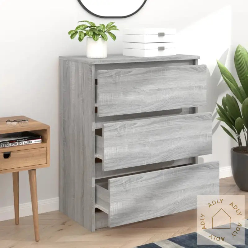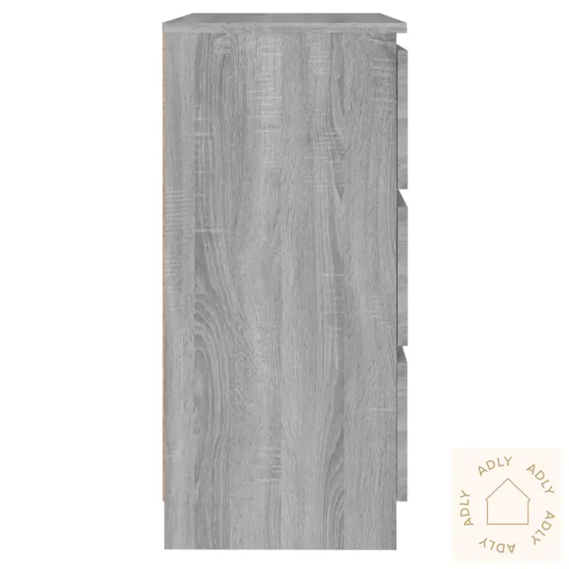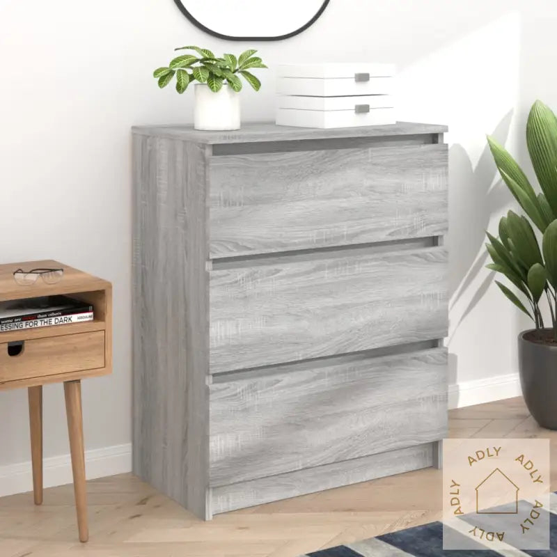 Premium materiale: Det konstruerte treverket gir ikke bare et raffinert utseende med sin glatte overflate, det sikrer også høy styrke, stabilitet og god motstand mot fukt – perfekt for hjem som setter pris på holdbare møbler.Rikelig med oppbevaringsplass: Skjenken kommer med tre dype skuffer, så du lett kan organisere og skjule alt fra nøkler til papirer, eller det du bruker i hverdagen. Her får du en smart måte å holde hjemmet ryddig på.Flerfunksjonell bruk: Toppen på skjenken er solid nok til å sette frem dekorative elementer, fotorammer, blomster eller til og med lys. Perfekt hvis du vil friske opp interiøret, enten du bruker den som konsollskap, highboard eller til andre formål i boligen.Med sin grå eikefinish passer denne skjenken sømløst sammen med andre møbler i stuen, gangen eller på soverommet. Den er et praktisk og stilig valg enten du vil ha noe som står alene, eller ønsker å kombinere med andre moderne møbler til hjemmet.