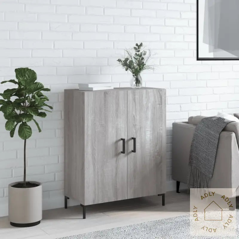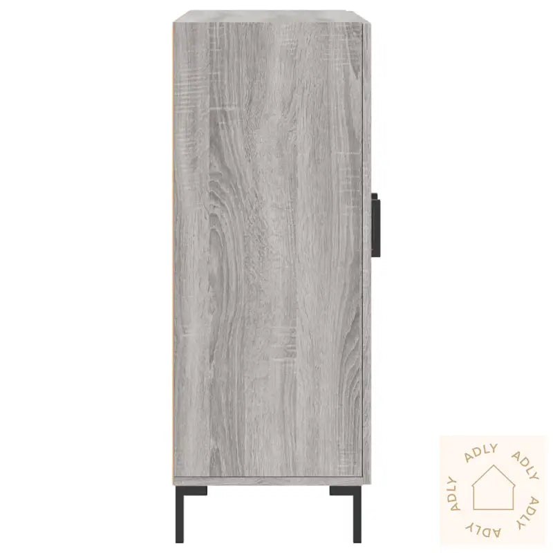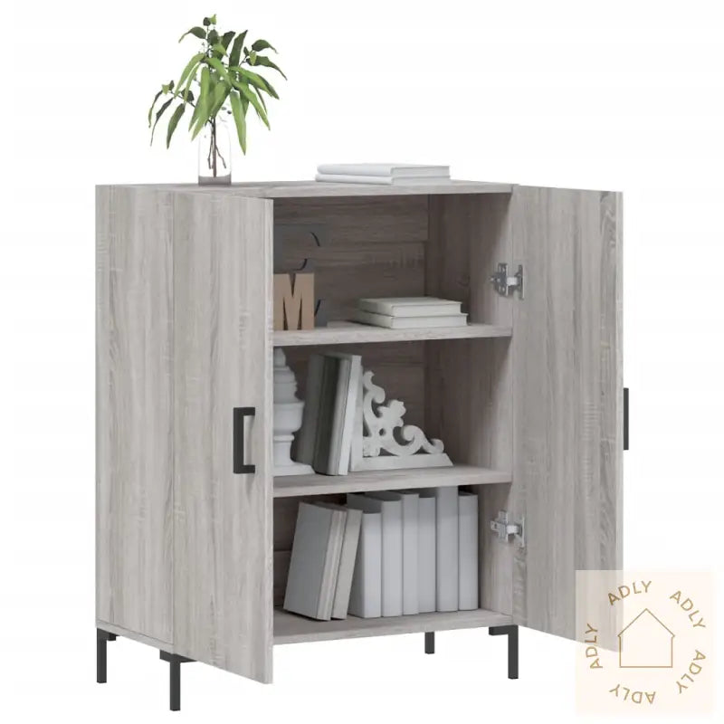 Slitesterkt materiale: Skjenken er laget av konstruert treverk i høy kvalitet, kjent for sin glatte overflate, stabilitet og styrke. Det robuste materialet tåler daglig bruk, gir god motstand mot fuktighet og gjør at møbelet holder seg pent år etter år. I tillegg er den enkel å holde ren – en rask tørk med en fuktig klut holder den like fin.Rikelig lagringsplass: Med flere romslige hyller og oppbevaringsflater sørger denne skjenken for at du får god plass til det du bruker mest; alt fra servise til bøker eller hverdagslige småting. En smart løsning for deg som ønsker organiserte omgivelser og lett tilgang til dine nødvendigheter.Visningsflate: Den solide toppen av skapet er ideell for å vise frem dekorative elementer, familiefotoalbum, lys eller små planter. Slik får du muligheten til å personliggjøre rommet og sette ditt eget preg på interiøret.Metallføtter: Skjenken står støtt på stilrene metallføtter som gir et moderne uttrykk og tilfører en ekstra touch av eksklusivitet. Samtidig sørger de for stabilitet og lang levetid.Advarsel: