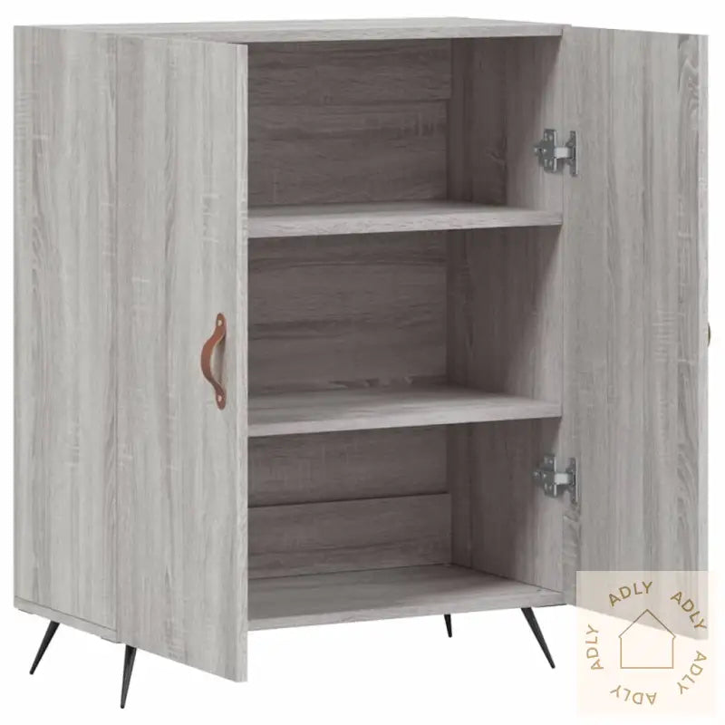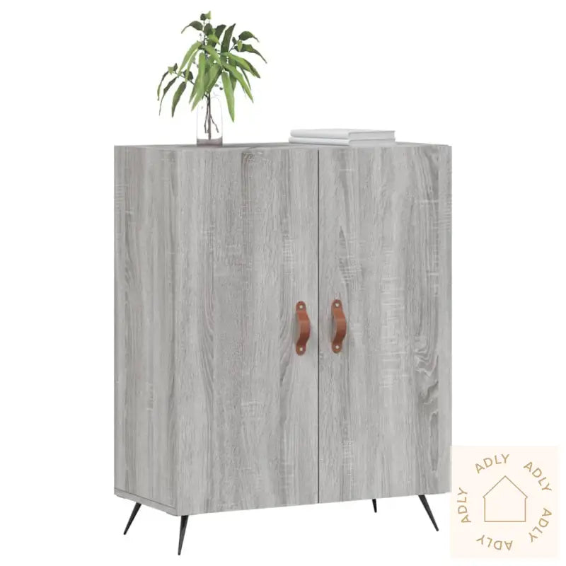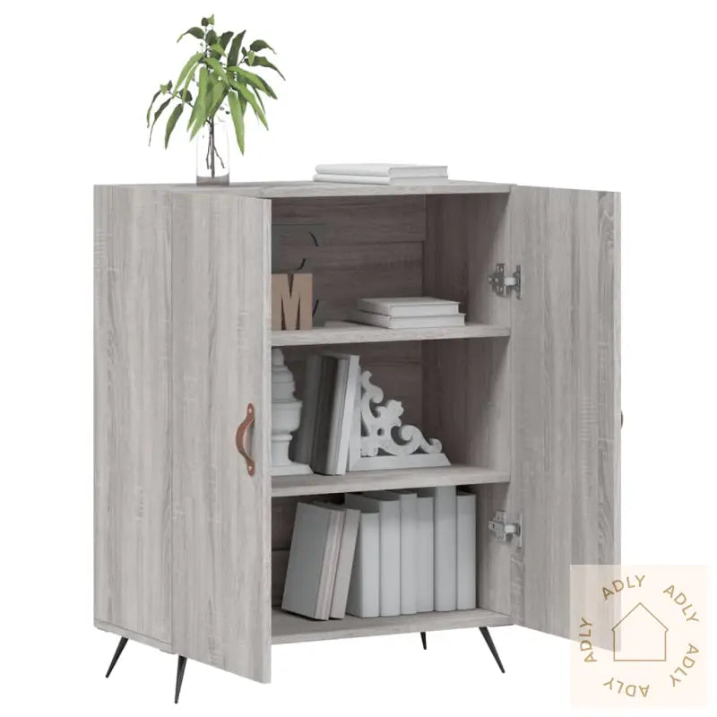 Slitesterkt materiale: Skapet er produsert i konstruert tre av høy kvalitet, med en jevn og attraktiv finish i grå sonoma. Dette materialet kombinerer styrke og holdbarhet med enkel vedlikehold – bare tørk overflaten med en fuktig klut for å holde den ren og pen. Det konstruerte treverket gjør det også motstandsdyktig mot fuktighet, slik at skjenken bevarer sitt flotte utseende år etter år.God lagringsplass: Skjenken gir deg rikelig med oppbevaringsmuligheter, slik at hverdagslige nødvendigheter alltid er samlet og lett tilgjengelig. Organiser tingene dine ryddig bak skapdørene og få en mer oversiktlig hverdag. Enten du trenger et sted til servise, bøker eller andre småting, har denne skjenken kapasiteten.Muligheter for dekorering: Topplaten gir perfekt plass til å vise fram dine favorittbilder, dekorative elementer eller små grønne planter. På den måten kan du enkelt tilføre din egen personlige stil til møblene i hjemmet.Stabile metallføtter: De solide metallføttene bidrar ikke bare til stabilitet, men gir også et moderne og stilrent uttrykk. Føttene beskytter både skjenken og gulvet, og sikrer at møblet står stødig.Vær oppmerksom på: