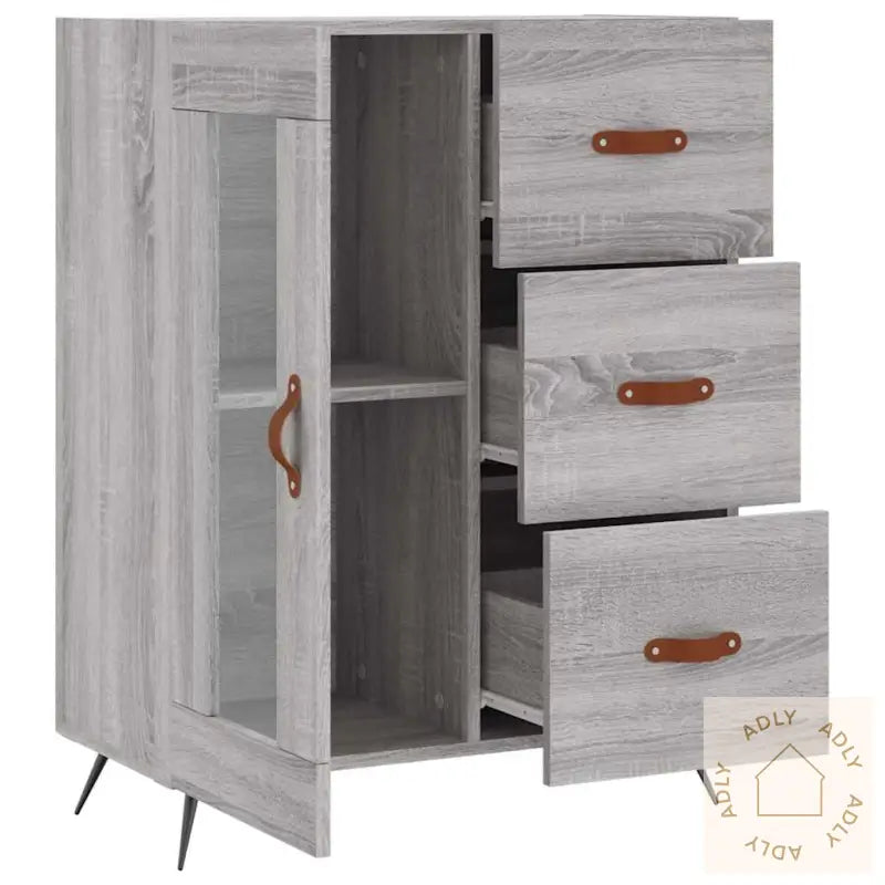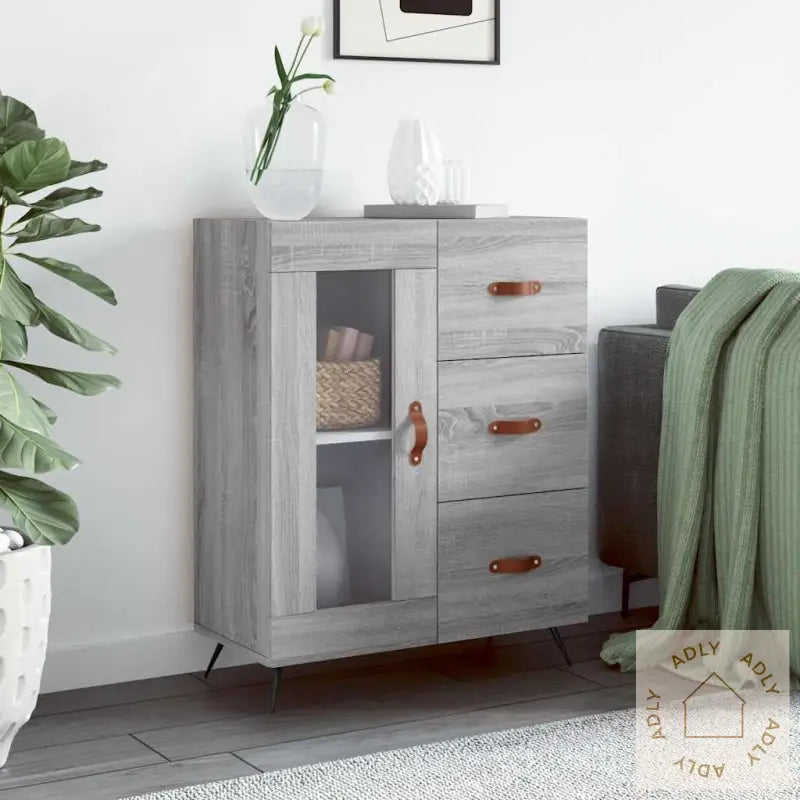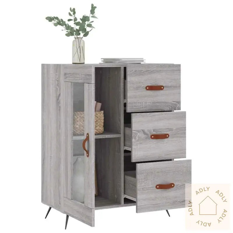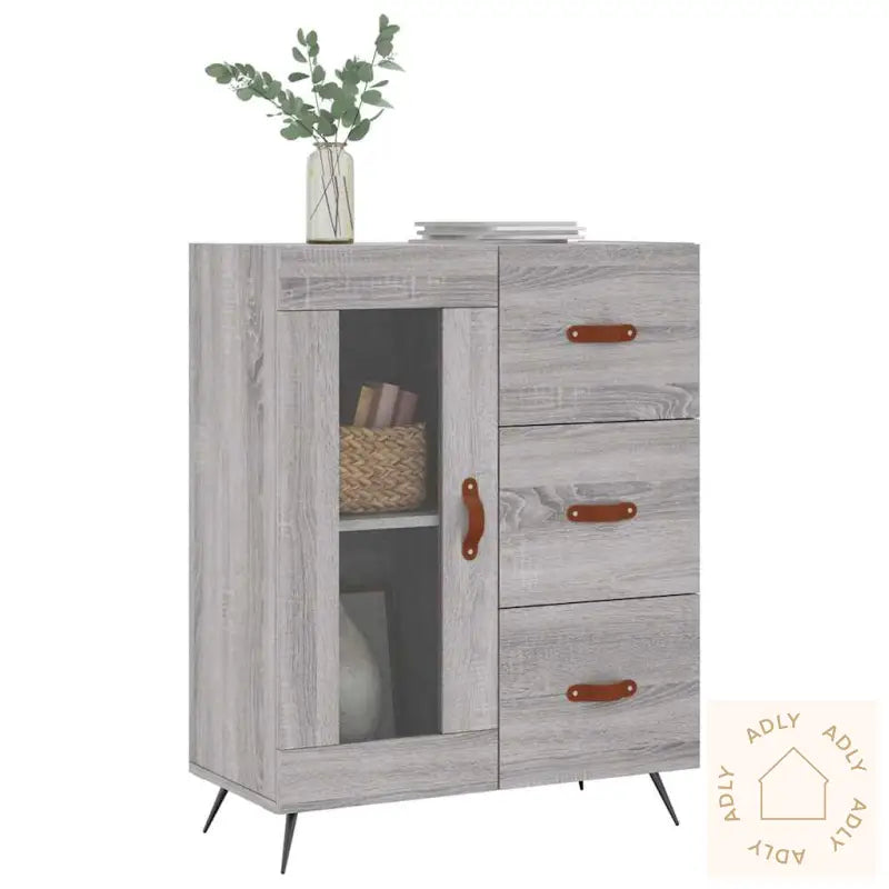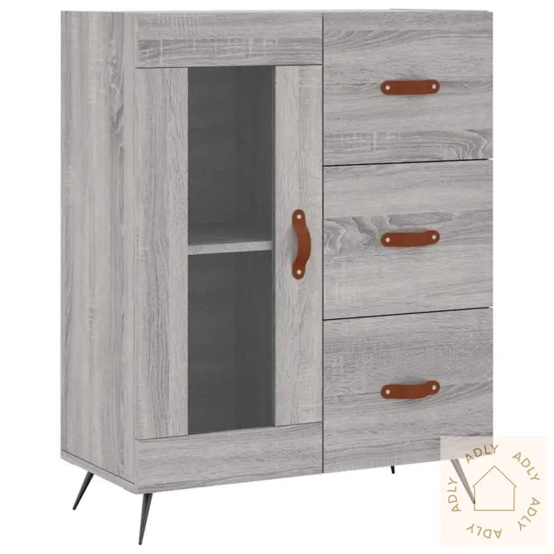 Solid materiale: Skjenken er laget av konstruert treverk i høy kvalitet. Materialet gir en glatt overflate og utmerker seg med styrke, stabilitet og motstandsdyktighet mot fukt, noe som gir lang levetid selv ved daglig bruk.Rikelig oppbevaring: Takket være tre romslige skuffer og to praktiske hyller bak glassdøren får du mer enn nok plass til å organisere alt fra servise og bøker til dekorasjoner. Dette gjør det lett å holde ting ryddig og ha nødvendigheter lett tilgjengelig.Visningsfunksjon: Den robuste toppen er ideell hvis du vil vise frem dine favorittdekor, fotorammer eller grønne planter – det gir rommet et personlig preg og skaper en hyggelig atmosfære.Praktisk dør: Med et lukket skap holder du både småting og større gjenstander skjult for støv og rot, samtidig som alt er enkelt å finne igjen når du trenger det.Metallføtter: Metallføttene gir møblet et moderne løft, sørger for god stabilitet, og gjør det enkelt å holde rent under skjenken.Advarsel: