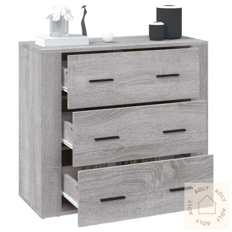 Slitesterkt materiale: Skapet er laget av høykvalitets konstruert tre som ikke bare gir et moderne uttrykk, men også langvarig holdbarhet. Den glatte overflaten gjør at det er lett å rengjøre og motstår både fuktighet og daglig slitasje – ideelt hvis du ønsker solide, stilige møbler.Tilstrekkelig lagringsplass: Med 3 romslige skuffer gir dette skapet deg nok plass til alt fra klær og bøker til småartikler eller servise. Det gir struktur i hverdagen og holder tingene lett tilgjengelige – perfekt for deg som verdsetter orden blant dine møbler til hjemmet.Robust topp: Topplaten er solid og stabil, slik at du trygt kan sette favorittbilder, dekorasjoner, planter eller kanskje noen stilige lamper. Dette gir rommet et personlig preg og gjør skjenken til en sentral del av interiøret.Advarsel: