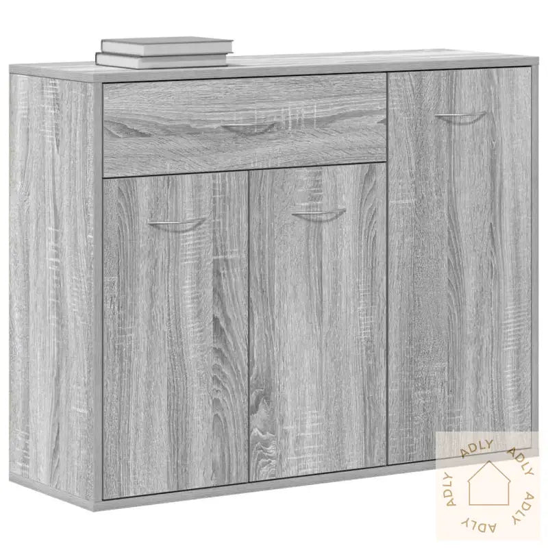 Premium materiale: Skapet er laget av konstruert tre av høy kvalitet, som har en glatt overflate og imponerende styrke. Materialet gir god stabilitet, motvirker deformasjon og tåler fuktighet – praktisk for aktive hjem, både innendørs og som ekstra oppbevaring til utemøbler når det trengs.Romslig oppbevaring: Med fire separate rom får du rikelig plass til å holde orden på alt fra bøker til multimediaenheter og andre viktige småting. Den smarte innredningen gjør det lett å finne frem og gir god oversikt i hverdagen.Utstillingsmuligheter: Den romslige bordplaten gir deg alle muligheter til å vise frem dine favorittdekorasjoner, bilder eller grønne planter. Perfekt hvis du ønsker å gi personlig preg på boligen med stilige detaljer.Lett å rengjøre: Overflaten på dette skapet er utviklet for enkel vedlikehold, så du holder det pent med et minimum av innsats – ideelt for familier eller deg som setter pris på praktiske møbler.Advarsel: