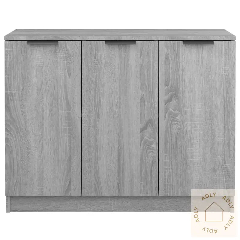 - Rikelig med lagringsplass: Skapet har tre dører som skjuler romslige oppbevaringsområder. Det gir rikelig plass til å oppbevare alt fra servise og bøker til småelektronikk og andre nødvendigheter — dette hjelper deg å holde hjemmet ryddig og organisert, enten du vil ha en skjenk på kjøkkenet, i gangen eller i stuen sammen med bokhyller og stående hyller.