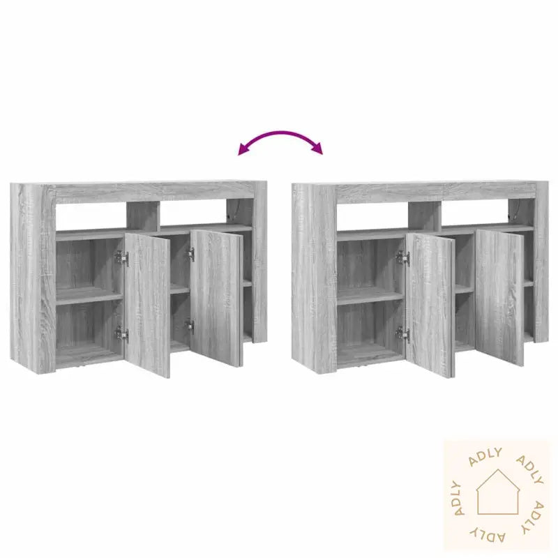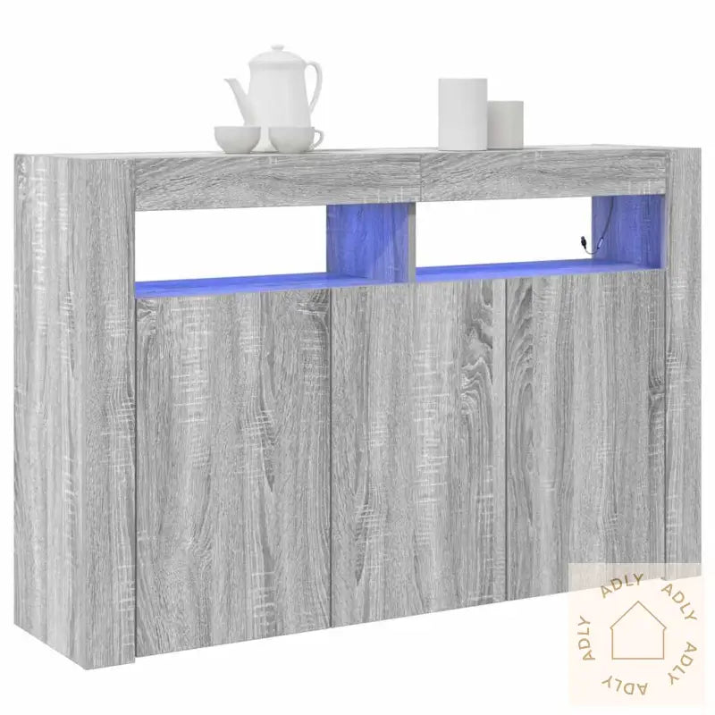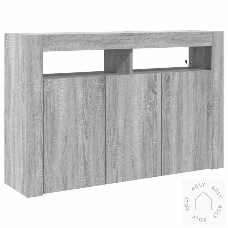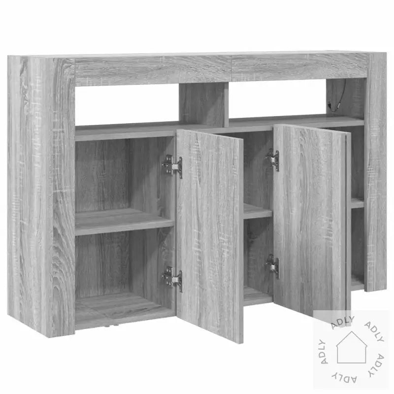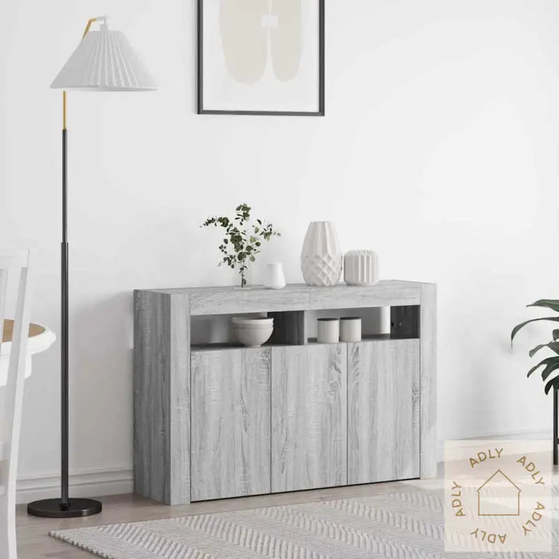 Den moderne grå Sonoma-skjenken er et allsidig møbel og et flott tillegg blant møbler til hjemmet. Både funksjonell og stilig, passer denne skjenken perfekt enten du ønsker ekstra oppbevaring på stuen eller en praktisk løsning i spisestuen. Med sitt rene og minimalistiske design gir den grå Sonoma-finishen et friskt preg til rommet ditt, og åpner for flotte muligheter med LED-belysning som bidrar til en varm og koselig atmosfære – ideelt for alt fra vennelag til familiefester. Skjenken er enkel å matche med annet interiør og kompletterer både moderne og mer klassiske hjem.