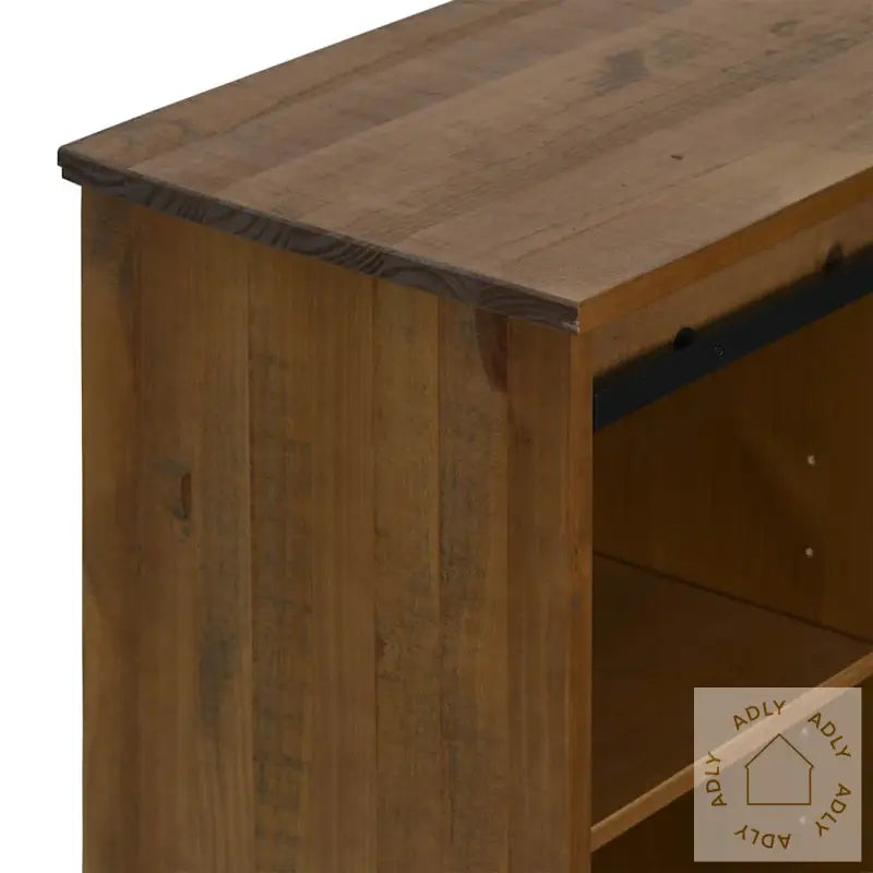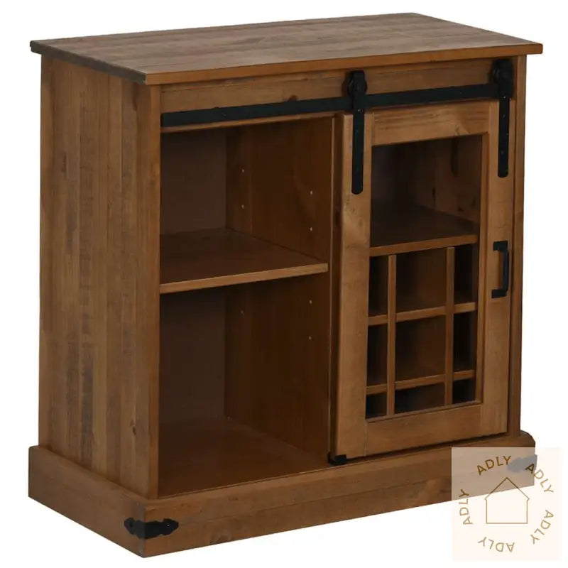 Holdbart materiale: Heltre furu er ikke bare kjent for sin lange levetid, men også for sitt tidløse utseende – en perfekt balanse mellom robusthet og estetikk. Materialet gjør denne skjenken til et smart investering blant møbler til hjemmet.Rikelig med oppbevaringsplass: Skapet tilbyr smarte løsninger med skyvedør, hyller og praktiske vinflaskeholdere. Her har du god plass til å oppbevare det viktigste, enten det er servise, glass, dekor eller andre ting som ellers fort kan skape kaos. Skyvedøren gir deg ekstra fleksibilitet og hjelper deg med å holde orden uten at det tar for mye plass i rommet.Brede bruksområder: Denne skjenken passer inn stort sett hvor som helst – om det er i stuen, på soverommet eller i gangen. Bruk den gjerne som konsoll, ekstra skap eller for å fremheve din personlige stil sammen med dine andre møbler, bokhyller og stående hyller.Glatt skyvedør: Det solide metallbeslaget og lettglidende mekanismen gjør døren enkel å bruke og gir deg tilgang til oppbevaringen på et blunk. Samtidig bidrar det kvalitetsrike metallet til skjenkens elegante uttrykk. Advarsel:
