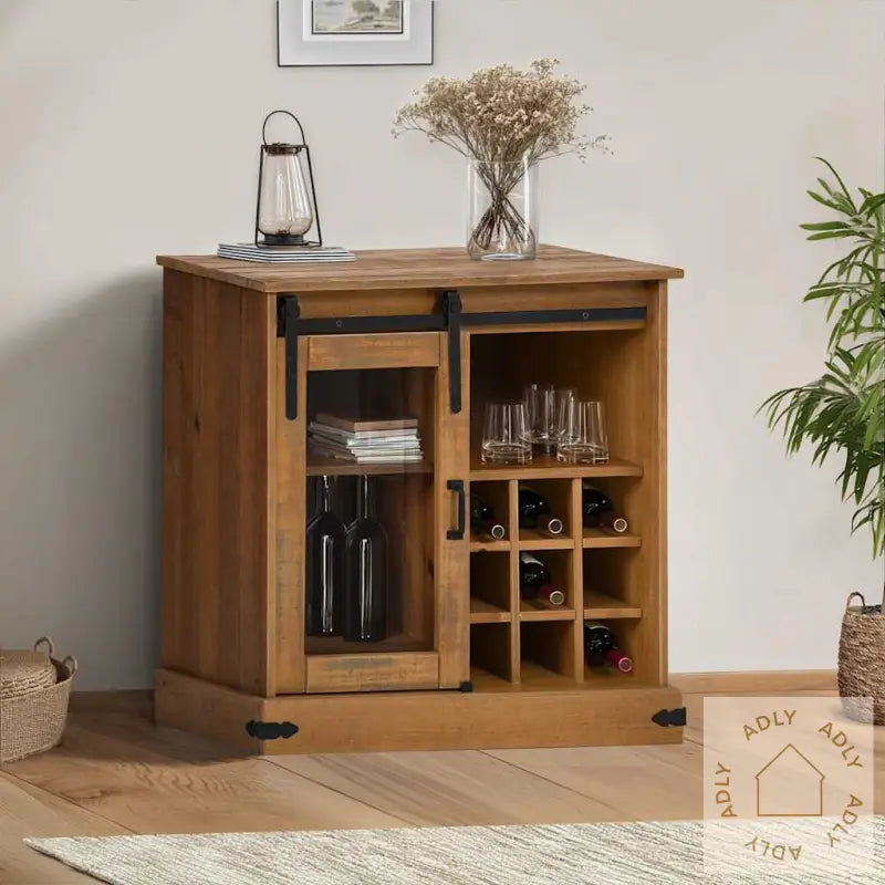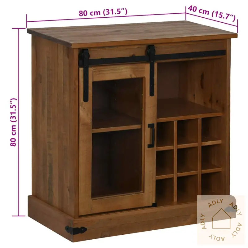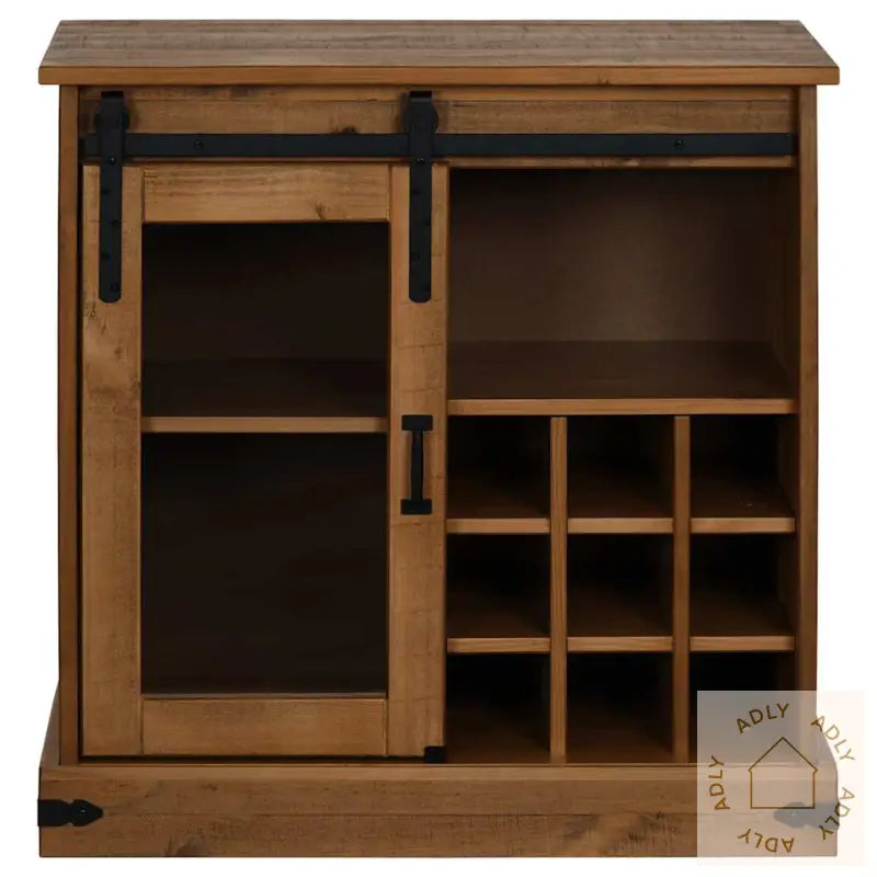 For å unngå at produktet velter, må du alltid bruke den medfølgende festeanordningen mot veggen.Materiale: Massiv furu med honningbrun finish, metallMål: 80 x 40 x 80 cm (B x D x H)Med én skyvedør samt ni dedikerte vinflaskeholdereKolleksjon: HALDENMontering kreves: JaMed denne skjenken får du ikke bare et møbel som dekker behovene dine for lagring, men også et stilig element som komplementerer andre møbler og interiør, som bokhyller og stående hyller. Skjenken er et supert valg for deg som ønsker praktiske løsninger og et møbel som virkelig setter preg på hjemmet ditt.