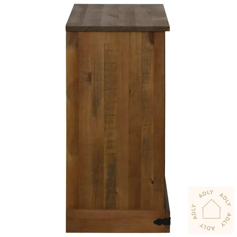 Skjenken fra HALDEN-serien kombinerer funksjonalitet med gjennomført design for å løfte ethvert boareal. Den er laget av helt massiv furu, et solid og fasinerende naturmateriale som gir både styrke og et naturlig uttrykk til møbelet. Den vakre honningbrune finishen sammen med treets rette korn og naturlige kvister gir skjenken et unikt, rustikt preg som passer godt inn i de fleste hjem.