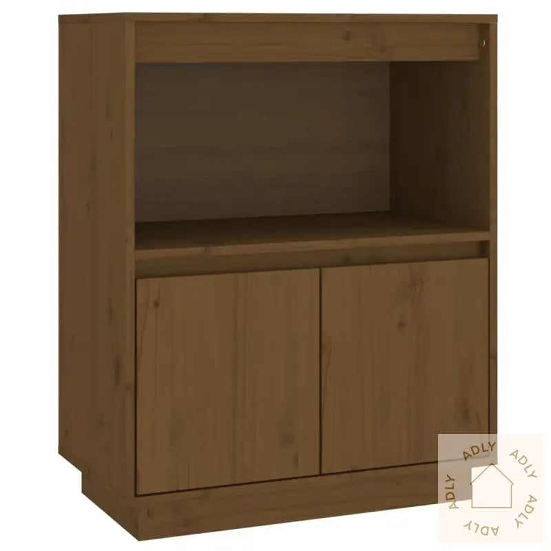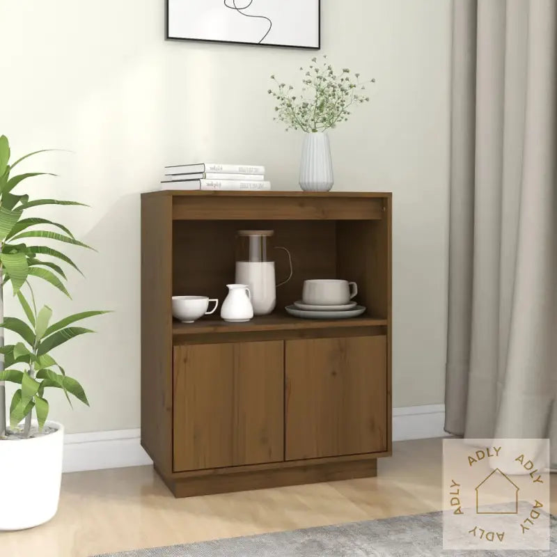 Denne skjenken i heltre furu er både et dekorativt og praktisk møbel til hjemmet ditt. Skjenken har et tidløst design med en varm honningbrun finish, noe som gjør den enkel å kombinere med andre møbler til hjemmet eller hagemøbler. Sideskapet er bygget av solid heltre furu, som både gir god stabilitet og lang levetid. Innvendig har du rikelig plass til å organisere bøker, multimedieapparater eller andre småting du vil ha lett tilgjengelig. Den robuste toppen inviterer til å vise frem favorittdekor, grønne planter eller koselige bilderammer og gir ekstra personlighet til rommet.