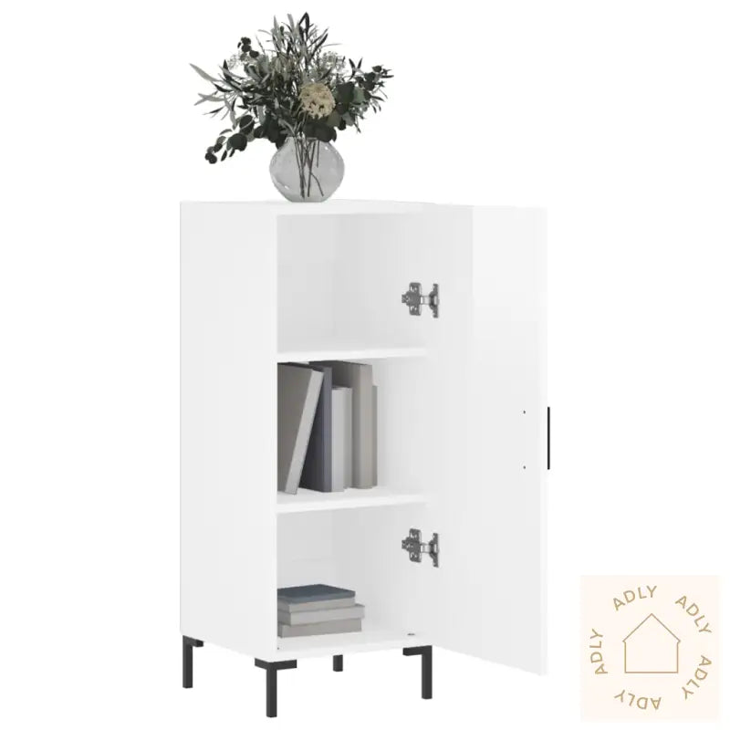 Slitesterkt materiale: Skjenken er laget av førsteklasses konstruert treverk som både ser flott ut og tåler daglig bruk over tid. Med sin glatte overflate, solide struktur og gode motstand mot fuktighet får du et møbel du kan stole på – perfekt for travle hjem.Moderne metallben: De stilrene metallbena gir en trendy touch til rommet og sørger samtidig for stabilitet, slik at skjenken står stødig. De passer godt sammen med andre møbler, også dersom du vil matche med for eksempel dine hagemøbler eller utendørsmøbler i nærheten av oppholdsrommet.Smart oppbevaring: Med tre egne rom blir det enkelt å holde orden og ha alt du bruker jevnlig lett tilgjengelig. God lagringsplass gjør den ideell til alt fra servise og glass til bøker eller andre personlige ting.Sterk og dekorativ topplate: Toppen av skjenken er både robust og romslig—her har du mye plass til å vise frem dekor, grønne planter, eller bilder av venner og familie. Akkurat det som gir hjemmet ditt den ekstra personlige touchen!Praktisk dør med håndtak: Beskytt eiendelene dine mot støv ved å oppbevare dem bak døren. Det ergonomiske håndtaket gjør det enkelt å åpne og lukke skapet når du trenger tilgang.Advarsel: