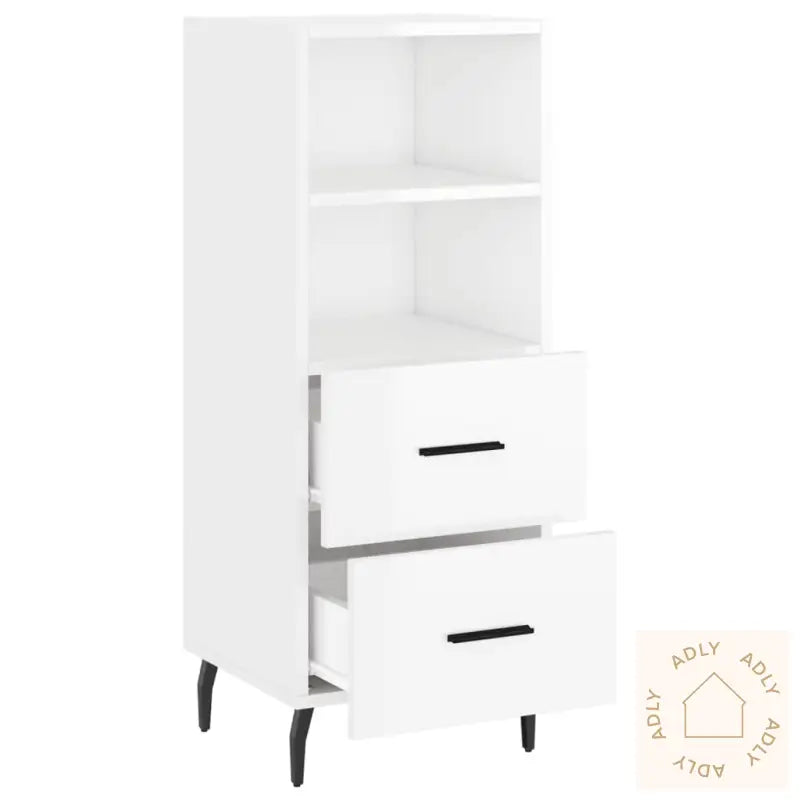 Slitesterkt materiale: Skjenken er laget av konstruert tre som er kjent for høy kvalitet, glatt finish og solid holdbarhet. Dette materialet har også naturlig styrke, god stabilitet og tåler fuktighet, noe som gir deg et hagemøbel eller innemøbel som varer lenge og ser bra ut år etter år.Moderne metallben: De robuste metallbena gir ekstra stabilitet og en ren, moderne stil som komplementerer alle typer interiør enten du satser på minimalisme eller mer klassiske løsninger innen møbler.Smart oppbevaring: Med to romslige skuffer og to åpne hyller får du mye oppbevaringsplass til å holde orden i stuen eller på kontoret. Bokhyller og stående hyller har kanskje vært din go-to før, men denne skjenken gir deg muligheten til å organisere tingene dine diskret samtidig som alt er lett tilgjengelig.Solid topp for dekoren din: Den stabile topplaten er ideell til å vise fram favorittdekor, bilder eller grønne planter og tilfører dermed ekstra personlighet til hjemmet eller kontoret.Advarsel: