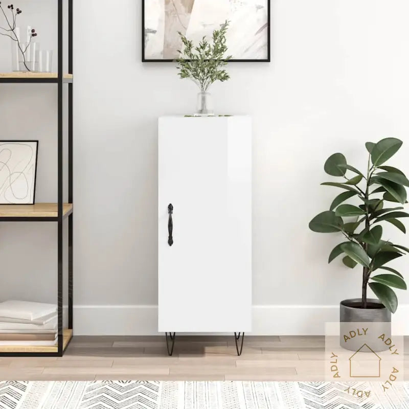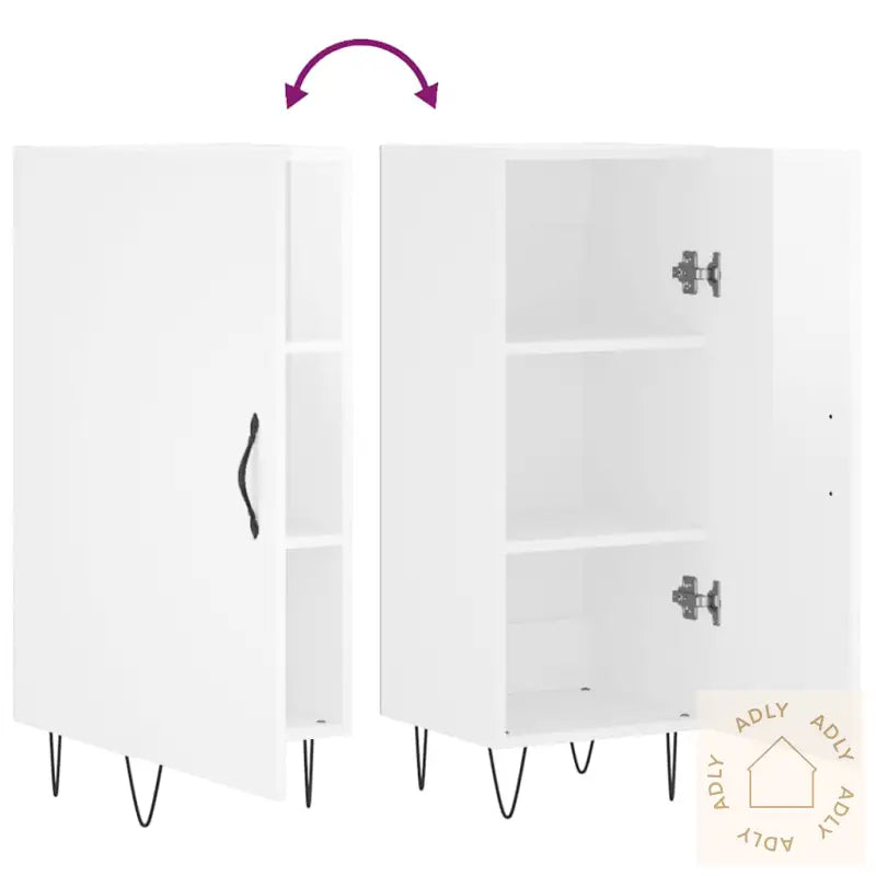 For å forhindre velt anbefales det å bruke den medfølgende festeanordningen for å sikre skapet trygt mot veggen.Farge: Høyglans hvit for et moderne uttrykk som matcher både eksisterende bokhyller og stående hyller og andre møbler.Materialer: Konstruert tre, metallMål: 34,5 x 34 x 90 cm (B x D x H)Montering kreves: jaLegal Documents: