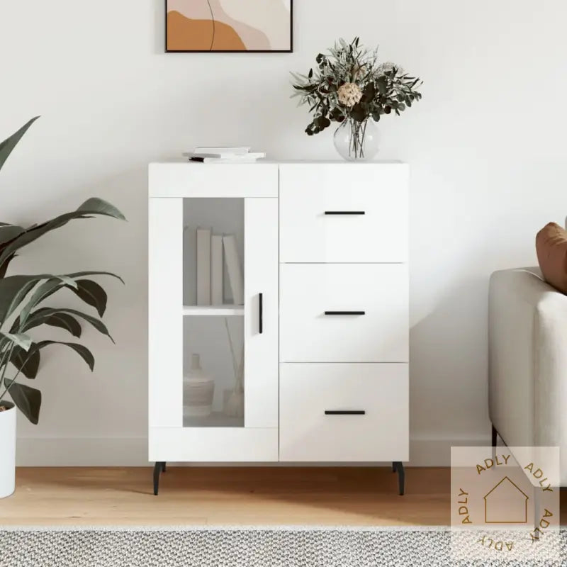 Rikelig oppbevaring: Med tre dype skuffer og to rom bak en elegant glassdør får du rikelig med plass til å organisere alt fra servise til småting. Alt du bruker ofte er lett tilgjengelig samtidig som oppbevaringsplassen hjelper deg med å holde hjemmet ryddig.