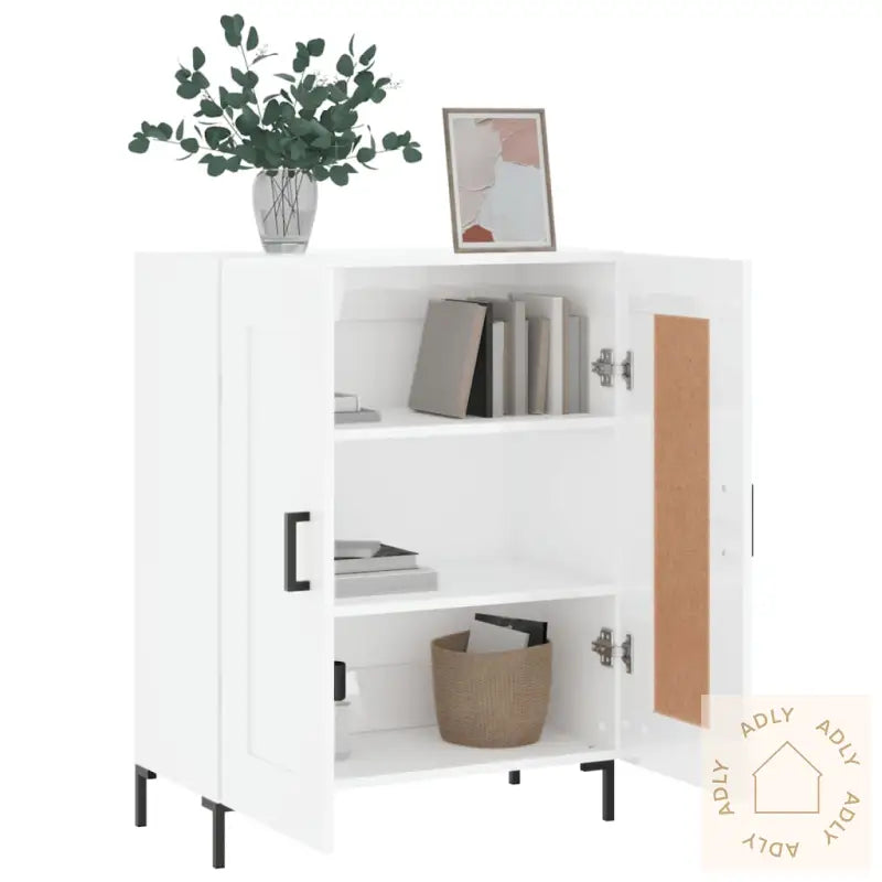 Slitesterkt materiale: Skjenken er laget av kvalitetsrikt konstruert treverk. Det gir en jevn, moderne overflate og sørger for god styrke, stabilitet og fuktmotstand – så møblene holder seg fine lenge.Rikelig med lagringsplass: Den romslige innmaten gjør det enkelt å holde orden på alt fra servise og hverdagsgjenstander til bøker og dekor, så alt du trenger er samlet og lett tilgjengelig.Visningsfunksjon: Toppen av denne stående hyllen fungerer også som en utstillingsplass hvor du kan vise frem dine favorittbilder, pene dekorgjenstander eller friske blomster – perfekt for å skape et personlig og innbydende uttrykk i rommet.Skjenken er et fleksibelt møbel som enkelt kombineres med andre bokhyller og stående hyller, og lar deg lage en helhetlig stil i rommet. Dette gir deg ekstra verdi når du skal fornye hjemmet eller ser etter allsidige møbler til hjemmet.