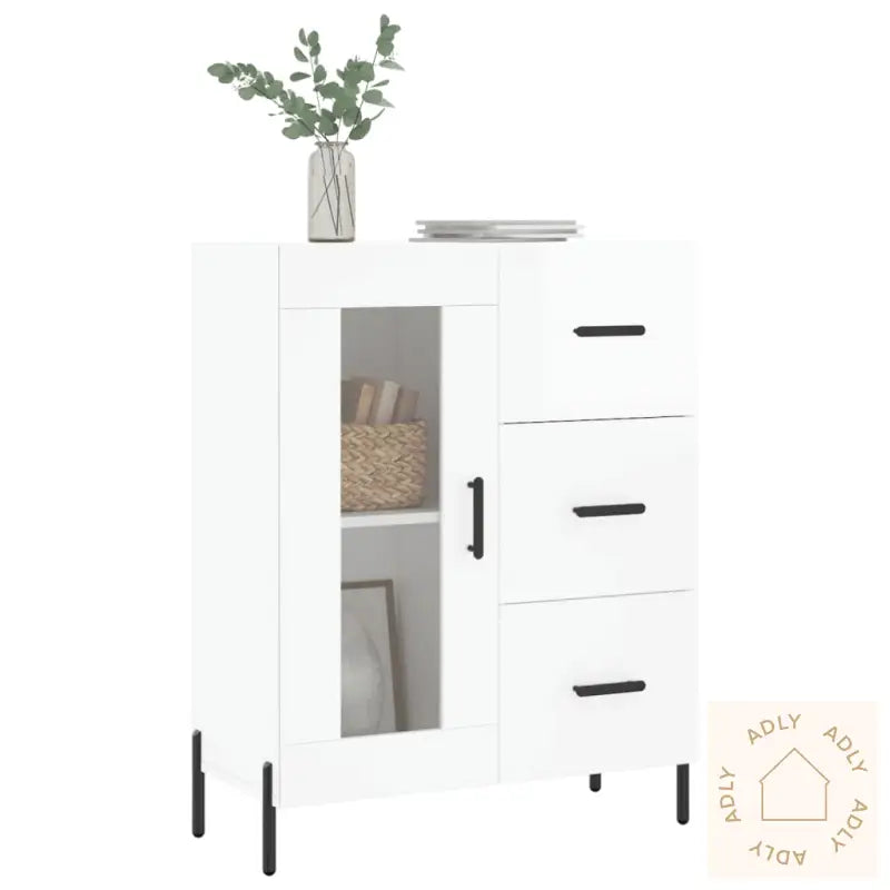 Smart oppbevaringsløsning: Skapet har 3 romslige skuffer og 2 rom bak en stilfull glassdør, perfekt for å sortere og organisere alt fra servise til småting du vil ha lett tilgjengelig i stuen eller spisestuen.