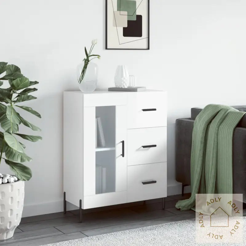 For å forhindre at møbelet velter, anbefales det å bruke den medfølgende festeanordningen.Farge: høyglans hvitMaterialer: konstruert tre, metall, glassMål: 69,5 x 34 x 90 cm (B x D x H)Montering kreves: jaLegal Documents: