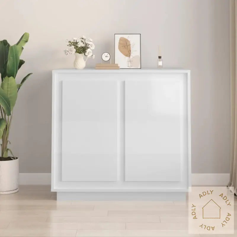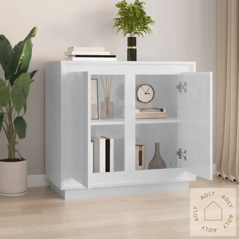 Slitesterkt materiale: Skjenken er laget av konstruert tre av høy kvalitet, kjent for sin jevne overflate og solide konstruksjon. Dette materialet gir ikke bare styrke og stabilitet, men sørger også for at skjenken holder seg fin lenge, samtidig som den tåler everyday bruk. Den glatte finishen gjør den enkel å rengjøre – det holder med en fuktig klut.Rikelig oppbevaringsplass: Med fire rom har du god plass til å organisere alt fra servise og glass til bøker eller andre hverdagslige ting. Det hjelper deg å holde orden i hjemmet, slik at alt du trenger er lett tilgjengelig og ryddig oppbevart.Flott for pynt og dekor: Toppen på skjenken gir deg en perfekt flate til å vise frem dine favorittdekorasjoner, som fotoalbum, små planter eller unike pyntegjenstander. På denne måten kan du enkelt sette ditt personlige preg på rommet.Praktiske dører: Skapdørene beskytter sakene dine mot støv og bidrar til å gi rommet et ryddig og gjennomført uttrykk, samtidig som du kan skjule det du ikke ønsker å ha fremme.Advarsel: