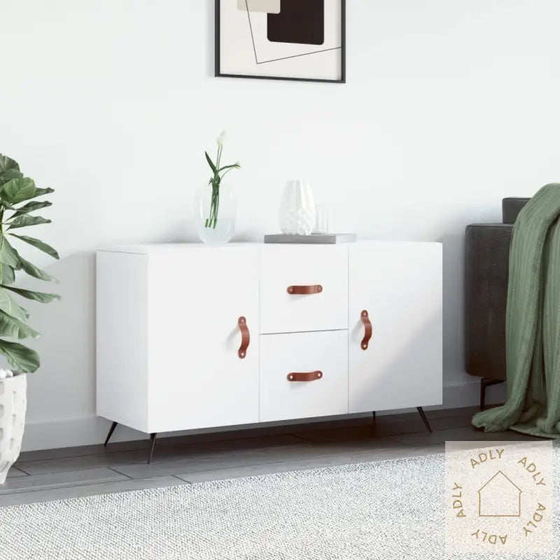 Slitesterkt materiale: Det konstruerte treverket har en jevn og elegant overflate, og byr på både robusthet, stabilitet og god motstand mot fukt. Dette gir deg et møbel du kan ha glede av lenge, uansett om du bruker det i gangen, stua eller andre rom.Metallben: De solide metallbena gir skjenken et moderne preg som smelter godt inn sammen med både klassiske og moderne møbler. Metallkonstruksjonen bidrar også til økt stabilitet og lang levetid.Rikelig med lagringsplass: Her får du masse oppbevaringsplass til det du trenger i hverdagen, enten det er magasinene i stua, serviset i spisestua, eller småting du vil holde ryddig. Alt ligger lett tilgjengelig, men skjult for å bevare et ryddig uttrykk.Stabil og robust topp: Topplaten er i tillegg svært slitesterk, og fungerer ideelt for å vise frem alt fra dekorative objekter og bilder til grønne planter – alt som setter et personlig preg på hjemmets interiør.Praktiske dører: Dørene holder eiendelene dine beskyttet mot støv, og de oversiktlige håndtakene gjør det enkelt å åpne både skap og skuffer og få tak i det du trenger når du trenger det.Advarsel: