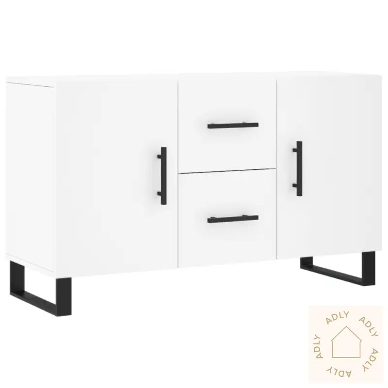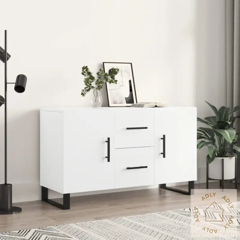 Slitesterkt materiale: Skjenken er laget av konstruert tre i høy kvalitet. Dette materialet har en jevn overflate, er slitesterkt og sørger for at møbelet beholder sin styrke og stabilitet over lang tid – i tillegg står det godt imot daglig slitasje og fuktighet. Perfekt for deg som ser etter varige møbler til både små og store hjem.Metallben: De robuste bena i metall gir skjenken en moderne og minimalistisk touch. Samtidig sørger de for ekstra støtte og stabilitet, så du trygt kan plassere tyngre gjenstander på toppen.Rikelig med lagringsplass: Praktiske skap og skuffer gjør det enkelt å holde orden på alt fra servise til dokumenter og andre hverdagslige nødvendigheter. Med god plass har du alltid tingene dine lett tilgjengelig, samtidig som hjemmet ser ryddigere ut.Stabil og robust topp: Øverste delen av skjenken er ideell til å vise fram dekorative detaljer som fotorammer, vaser eller potteplanter – og gir hjemmet ditt det lille ekstra. Kombinasjonen av funksjon og estetikk gjør dette til et møbel som virkelig pynter opp rommet.Praktiske dører: Lukkede dører holder eiendelene dine støvfrie og beskyttet. Håndtakene på både dørene og skuffene gjør det lett å åpne og lukke, slik at du raskt finner det du trenger. Dette gir ikke bare enklere organiseringsmuligheter, men bidrar til at møbler til hjemmet får et ryddig og innbydende uttrykk.Advarsel: