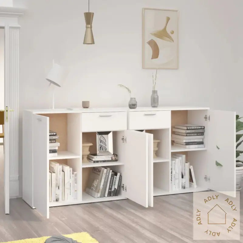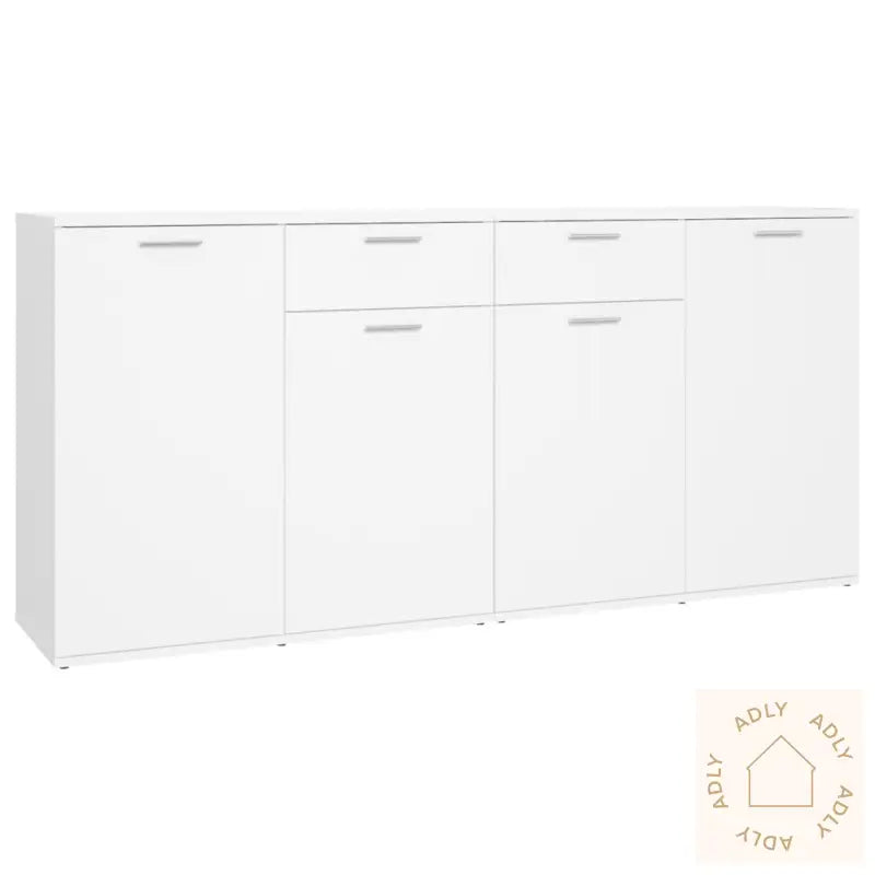 For å unngå at skjenken velter bør du alltid bruke festebeslagene som følger med. Dette øker sikkerheten og gir deg ro i sjelen, spesielt hvis du har små barn hjemme.Farge: HvitMateriale: Konstruert treSamlet mål: 160 x 36 x 75 cm (L x B x H)Mål (hver): 80 x 36 x 75 cm (L x B x H)Med 4 dører og 2 skufferMontering kreves: JaMerk: Dette produktet inkluderer to separate skjenker, hver med målene 80x36x75 cm – du kan bruke dem sammen eller hver for seg etter behov.