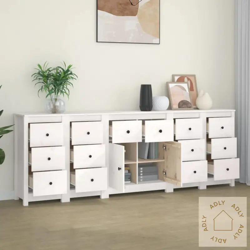 Hver enkelt skjenk kommer med en detaljert monteringsveiledning i esken. Dette sørger for enkel og grei montering, så du raskt kan ta skjenken i bruk hjemme hos deg.Farge: hvitMateriale: heltre furuSamlet mål: 230 x 35 x 80 cm (B x D x H)Mål skjenk med dører: 70 x 35 x 80 cm (B x D x H)Mål skjenk med skuffer: 40 x 35 x 80 cm (B x D x H)Leveransen inneholder:1 x skjenk med dører4 x skjenker med skufferLegal Documents: