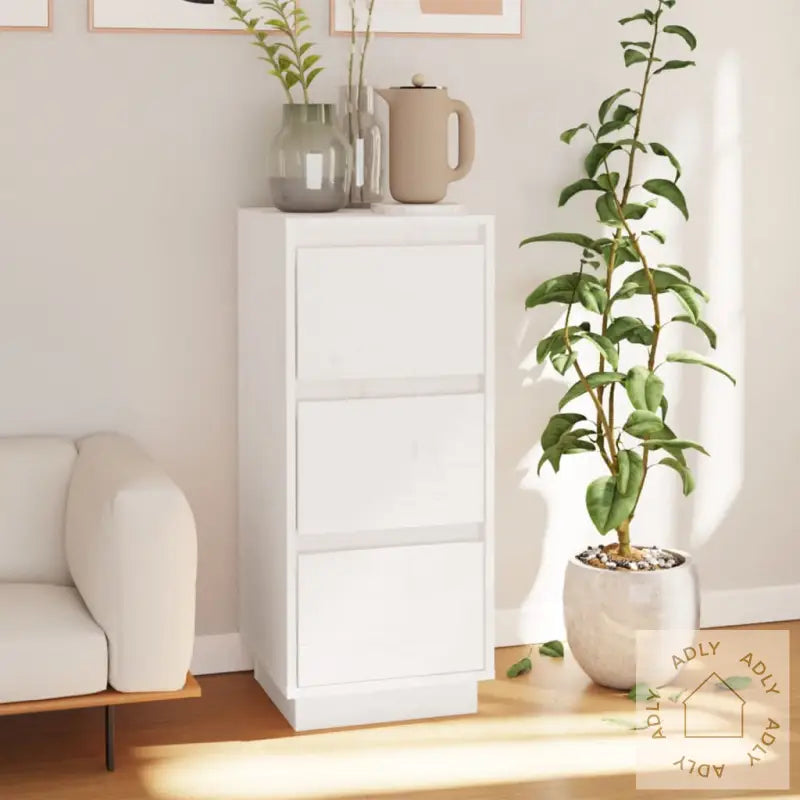 Denne stilige skjenken gir et elegant preg og moderne uttrykk til stuen din, og passer perfekt inn blant møbler til hjemmet. Oppbevaringsskapet er laget av heltre furu, noe som gir både varig kvalitet og en naturlig, tidløs følelse. Dette robuste sideskapet gir deg god plass til å oppbevare bøker, multimedieapparater og andre viktige ting, slik at stuen holder seg ryddig og organisert. Den solide toppen fungerer utmerket til å fremheve dekorative elementer, bilder eller potteplanter, og gjør det enkelt å skape en personlig atmosfære.