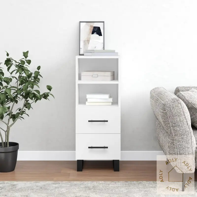 Slitesterkt materiale: Den er laget av konstruert tre av høy kvalitet som har en jevn overflate, er solid og stabil, samt motstandsdyktig mot både fuktighet og daglig slitasje. Dette gir deg møbler som varer lenge og er enkle å holde rene.Metallben: De robuste metallbena tilfører et moderne preg og gir skjenken ekstra støtte, slik at den står stødig og trygt – ideelt for travle hjem.Rikelig med oppbevaringsplass: Skjenken har to romslige skuffer og to åpne rom, noe som gir deg masse plass til å oppbevare tingene dine oversiktlig. Perfekt for alt fra servise og glass til småting du vil ha lett tilgjengelig.Stabil og robust topp: Topplaten tåler mye og gir god plass til dekorative detaljer. Her kan du vise frem personlige favoritter som potteplanter, bøker, fotorammer eller andre pynteting – som virkelig setter prikken over i-en i ditt hjem.Advarsel: