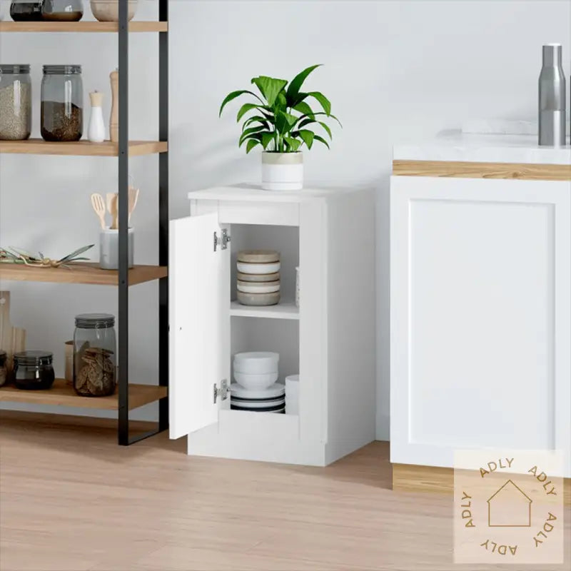 Solid materiale: Skjenken er laget av høykvalitets konstruert tre, som gir en jevn overflate og lang holdbarhet. Materialet gir både styrke, stabilitet og motstand mot fuktighet – egenskaper som gjør at dette møbelet holder seg pent selv ved daglig bruk. Dette gir deg en varig investering innen møbler til hjemmet ditt.Rikelig med lagringsplass: Med sitt funksjonelle design tilbyr sideskapet god plass til å oppbevare alt fra daglige nødvendigheter til pyntegjenstander. Hold tingene dine organiserte og lett tilgjengelig, enten du bruker den til bøker, elektronikk eller kjøkkenutstyr.Visningsfunksjon: Den solide toppen av skapet er ideell for å fremheve dekorative elementer som vakre pyntegjenstander, fotorammer eller grønne planter. Du kan også enkelt bruke denne skjenken som nattbord på soverommet – virkelig et fleksibelt valg blant møbler.Advarsel: