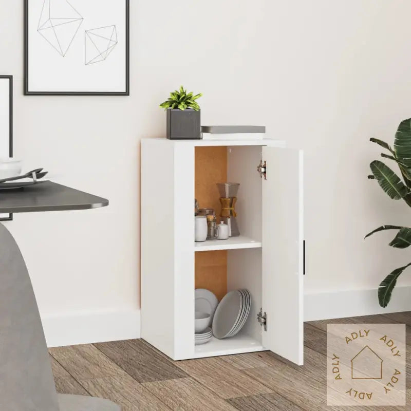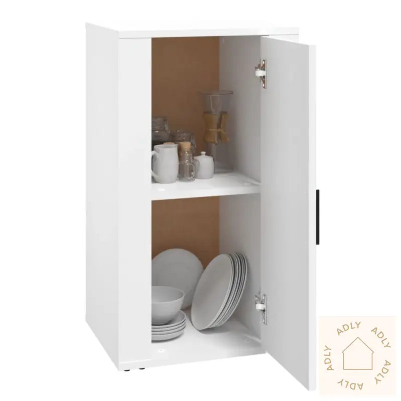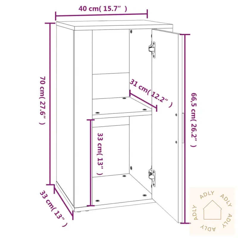 Slitesterkt materiale: Denne skjenken er laget av konstruert tre, kjent for sin eksepsjonelle kvalitet. Det glatte materialet gir ikke bare et moderne uttrykk, men sikrer også styrke og god stabilitet. I tillegg tåler skapet fuktighet, slik at det holder seg pent lenge – et smart valg blant ulike møbler.Rikelig lagringsplass: Skapet byr på store rom med plass til alt fra bøker, klær eller annet du bruker til vanlig. Du får holdt tingene dine oversiktlige og lett tilgjengelige, noe som er perfekt for et ryddig hjem.Solid topp: Ønsker du å sette et personlig preg på rommet? Overflaten på skjenken har nok plass til favorittbildene dine, dekor eller kanskje en blomsterpotte. Dette gjør det enkelt å kombinere den med hagemøbler eller bokhyller og stående hyller for et helhetlig utseende.Praktisk dør: Skapet har en dør foran som beskytter eiendelene dine mot støv og smuss. Dermed holder både tekstiler og andre nødvendigheter seg rene.Advarsel: