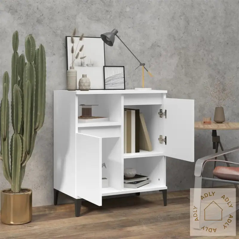 Skapet er laget av slitesterkt konstruert treverk og solide metalldeler som gir ekstra styrke og stabilitet. Overflaten er glatt og enkel å holde ren – en fuktig klut er alt du trenger for å friske opp utseendet.Med totalt fire rom tilbyr skjenken god lagringsplass, slik at alt fra servise og bøker til daglige nødvendigheter holder seg organisert og lett tilgjengelig. Dette gir deg bedre plassutnyttelse, uansett hvilken del av hjemmet du plasserer den i.Toppen av skapet er ideell for å fremheve dine dekorative favoritter – det kan være fotoalbum, små grønne planter eller pyntegjenstander som gir rommet personlighet. Det gir deg mulighet til å vise frem noe spesielt på et godt synlig sted.Godt å vite: