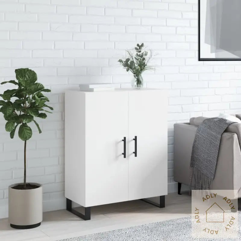Slitesterkt materiale: Skapet er laget av konstruert tre av høy kvalitet som gir en jevn og elegant overflate. Dette materialet gir både styrke, stabilitet og motstand mot fuktighet – ideelt for møbler som skal vare lenge. Skjenken er enkel å rengjøre, så hverdags vedlikehold går raskt med bare en fuktig klut.Rikelig med lagringsplass: Med flere romslige hyller og skuffer hjelper denne skjenken deg å holde orden på alt fra servise til daglige nødvendigheter. Alle tingene dine har sin faste plass, slik at du slipper rot og har det du trenger lett tilgjengelig.Visningsfunksjon: Toppen av skjenken er perfekt for å sette frem dekorative elementer som lys, blomster, fotoalbum eller grønne planter. Dette gir en personlig og lun følelse i hjemmet og lar deg vise frem favorittene dine.Metallføtter: De stilrene metallføttene gir skapet et moderne preg og løfter inntrykket av interiøret, samtidig som de sikrer god stabilitet og støtte til møbelet.Advarsel: