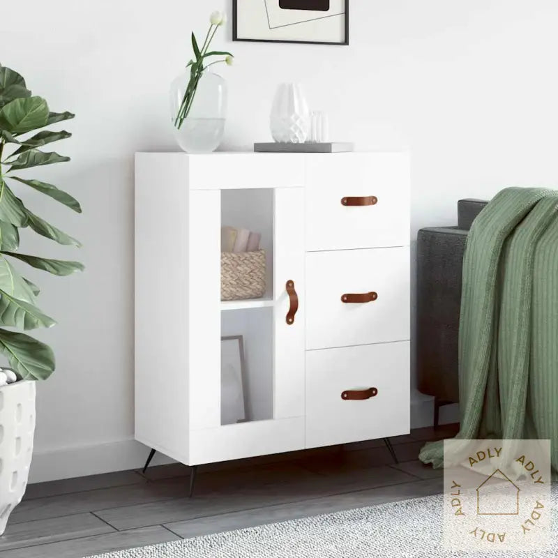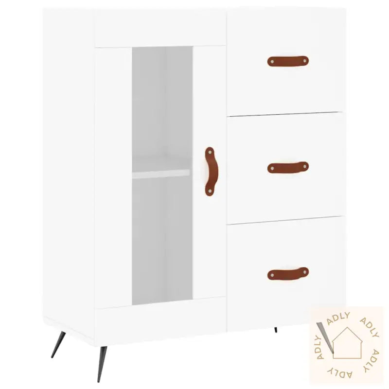 Solid materiale: Skjenken er laget av konstruert tre, kjent for sin slitestyrke og sterke konstruksjon. Den glatte overflaten gir et moderne uttrykk samtidig som møbelet tåler daglig bruk og generelt er motstandsdyktig mot fuktighet. Dette sikrer at du får glede av dine nye møbler i mange år fremover.Rikelig oppbevaring: De tre skuffene og to separate rom bak glassdøren gir deg oversiktlig og praktisk oppbevaringsplass. Her får du enkelt orden på alt fra papirer og servise til andre hverdagslige ting, og du slipper å lete etter småting.Visningsfunksjon: Den solide toppen gjør det superenkelt å pynte etter eget ønske. Sett ut favorittbøkene, dekorative bokhyller og stående hyller, bilder, eller grønne potteplanter for å sette ditt eget preg og gi stuen eller gangen et personlig uttrykk.Praktisk dør: Med en funksjonell dør holder du innholdet støvfritt, organisert og ute av syne – perfekt for deg som liker det ryddig rundt deg.Metallføtter: De robuste metallføttene gir ekstra støtte og stabilitet, samtidig som de gir skapet en sofistikert og moderne look som passer sammen med andre hagemøbler eller møbler til hjemmet.Advarsel: