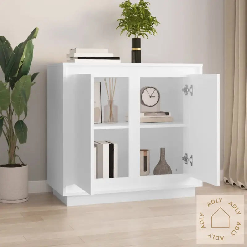 Slitesterkt materiale: Skapet er laget av konstruert treverk av høy kvalitet. Dette gir en jevn og pen overflate samtidig som det gjør møbelet solid og svært motstandsdyktig mot fukt. Det er perfekt for norske hjem, og det er enkelt å holde skjenken ren – bare tørk over med en fuktig klut.Rikelig med lagringsplass: Skjenken har totalt 4 rom. Det betyr at du har god plass til å holde hverdagslige nødvendigheter, servise, eller annet tilbehør pent organisert og lett tilgjengelig – enten du bruker det på kjøkkenet, stua eller kontoret.Visningsmuligheter: Topplaten på skjenken er ideell for å framheve små planter, personlige dekorasjoner eller bilder. På den måten kan du enkelt gjøre denne kommoden til en personlig del av interiøret ditt.Praktiske dører: Skjulte rom bak dører holder ting støvfrie og ordnet, noe mange setter pris på i et travelt hjem. Smarte løsninger gjør møbler som dette ekstra brukervennlig.Advarsel: