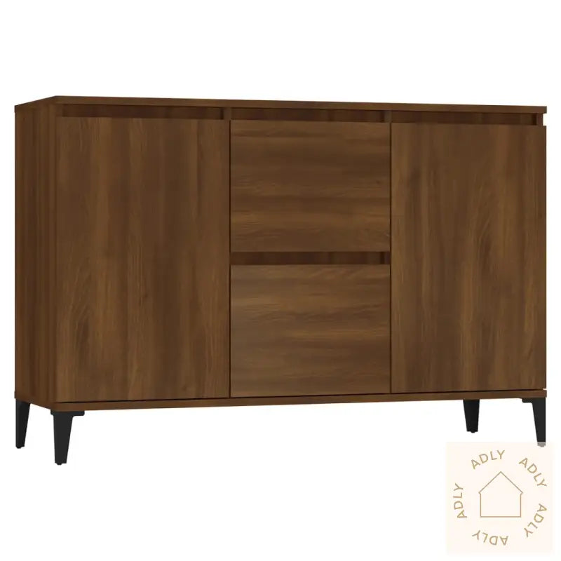 For å sikre at skjenken står stødig og trygt, må de medfølgende festemidlene for vegg benyttes for å hindre at møblet velter.Farge: brun eikMål: 104 x 35 x 70 cm (B x D x H)Materialer: konstruert tre, metallMed 2 skuffer og 2 dørerLett å rengjøreMontering kreves: jaLegal Documents: