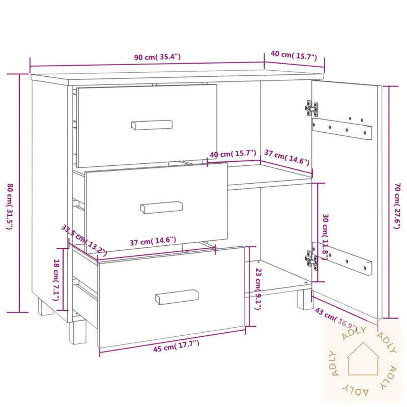Skuffeskapet er laget av heltre furu, et slitesterkt naturlig materiale som gir stabilitet og lang levetid. Designet inkluderer en solid konstruksjon, som gjør møbelet både robust og pålitelig i daglig bruk. Highboardet har én dør og tre lettglidende skuffer, slik at du enkelt får oversikt over det du oppbevarer. De romslige skuffene gir godt med plass, slik at alle småting, dokumenter eller andre ting du bruker daglig forblir organiserte og innen rekkevidde. Med store mål på skuff gir det deg muligheten til å oppbevare selv litt større gjenstander.