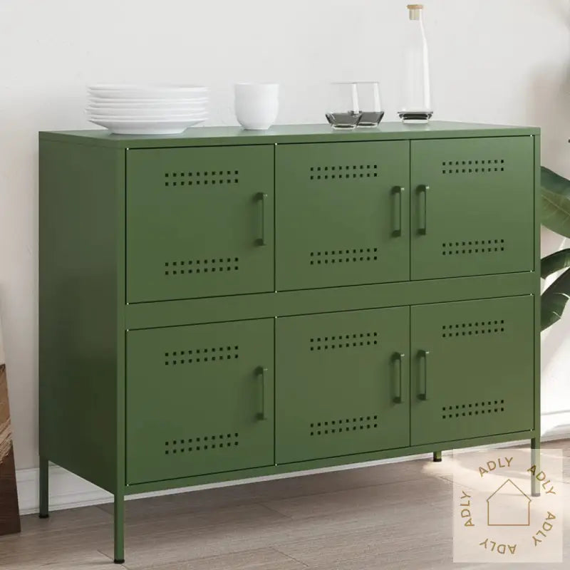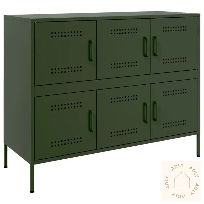 For å forhindre at produktet velter, anbefales det å bruke den medfølgende festeanordningen for ekstra sikkerhet.Farge: olivengrønnMateriale: kaldvalset stålMål: 100,5 x 39 x 79 cm (L x B x H)Maksimal lastekapasitet: 30 kgMed 4 justerbare skrueføtterMed 6 romMed 6 dørerMontering kreves: jaLegal Documents: