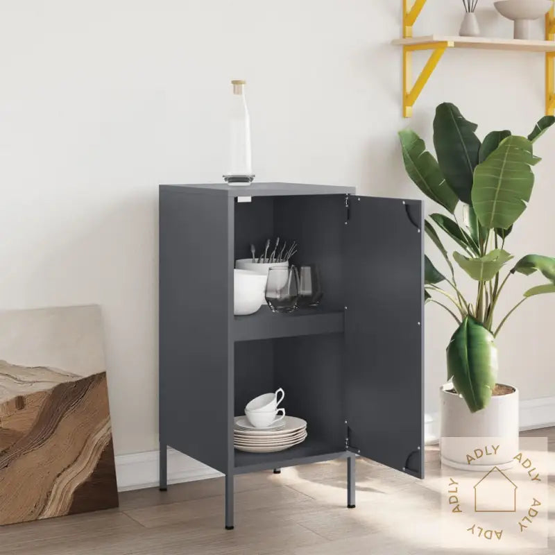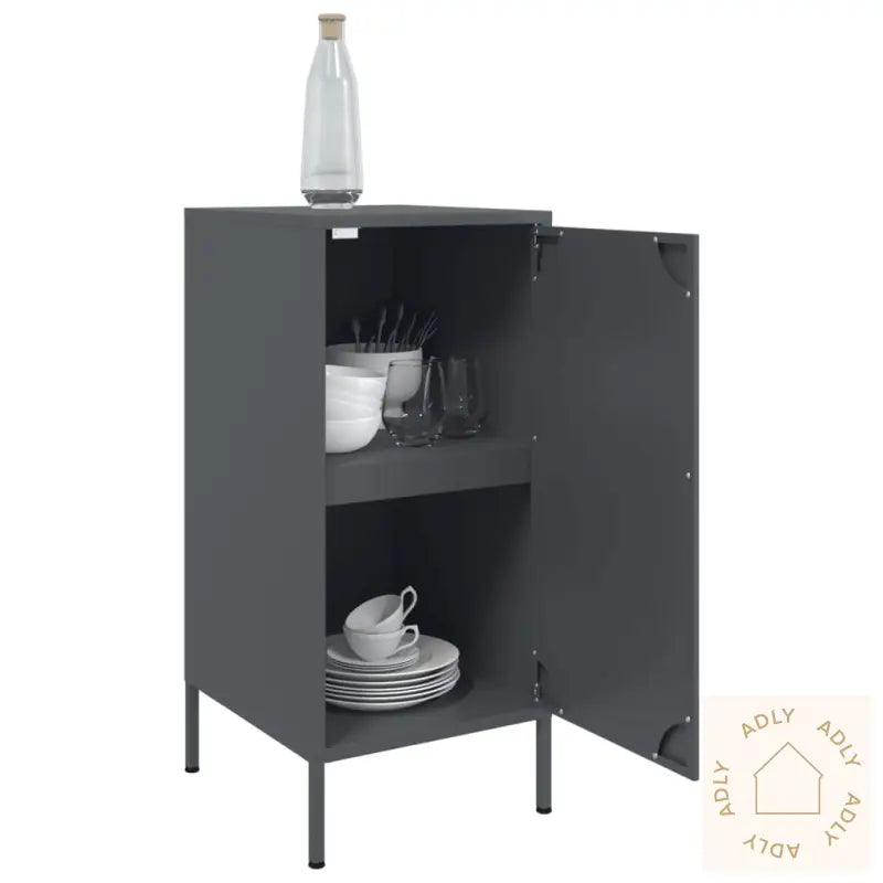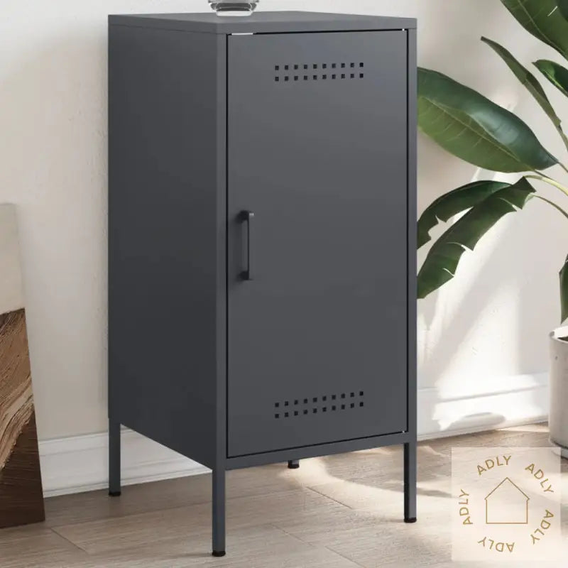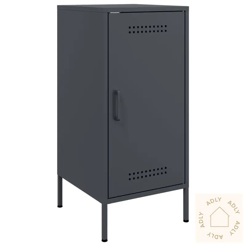For sikker bruk må produktet festes i veggen med den medfølgende festeanordningen for å unngå at det velter.Farge: AntrasittMateriale: kaldvalset stålMål: 36 x 39 x 79 cm (L x B x H)Maksimal lastekapasitet: 20 kgMed 4 justerbare skrueføtterMed 2 romMed 1 dørMontering kreves: jaLegal Documents: