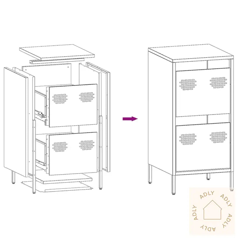 Robust og stabil struktur: Skjenken er laget i kaldvalset stål, kjent for sin glatte overflate, ekstra styrke og holdbare konstruksjon. De solide metallføttene gir innredningen din et moderne og elegant uttrykk, samtidig som de sørger for at møbelet står støtt og stabilt.Rikelig med oppbevaringsplass: Med to romslige skuffer får du god plass til å oppbevare alt fra dokumenter og bøker til småsaker, slik at alt kan ha sin faste plass og være enkelt å finne igjen.Enkel å vedlikeholde: Den glatte overflaten på kaldvalset stål gjør skjenken lett å tørke av og holde ren. En enkel fuktig klut er alt som trengs, så dette er et møbel som krever lite vedlikehold og alltid ser pent ut.Allsidig: Denne funksjonelle skjenken passer inn i mange ulike rom – bruk den som sideskap i stua, ekstra oppbevaring på soverommet, eller kanskje i gangen. Uansett gir den et nyttig løft til interiøret!Advarsel: