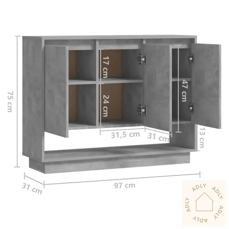 Farge: betonggrå som gir et moderne og tidsriktig uttrykkMateriale: konstruert tre for robust holdbarhetMål: 97 x 31 x 75 cm (L x B x H), tilpasset for effektiv plassutnyttelseMontering krevesUansett om du leter etter bokhyller og stående hyller, smarte oppbevaringsløsninger eller andre møbler til hjemmet, er denne skjenken et allsidig valg for ethvert interiør.